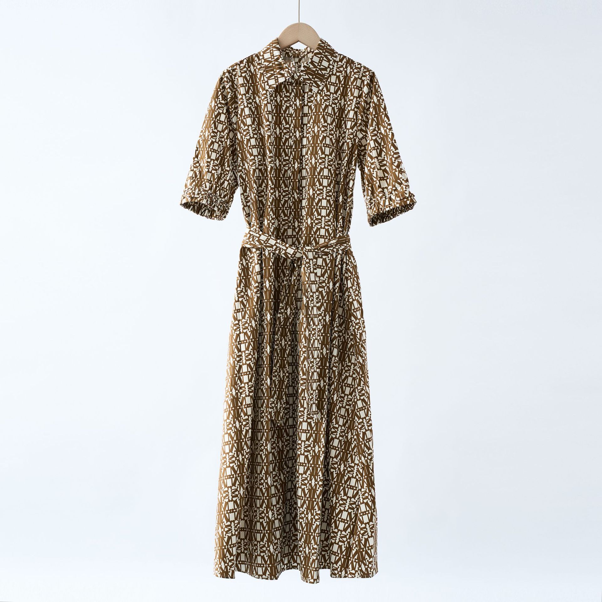 봄과 여름 2025 새로운 여성면 포플린 인쇄 셔츠 반바지 원피스
