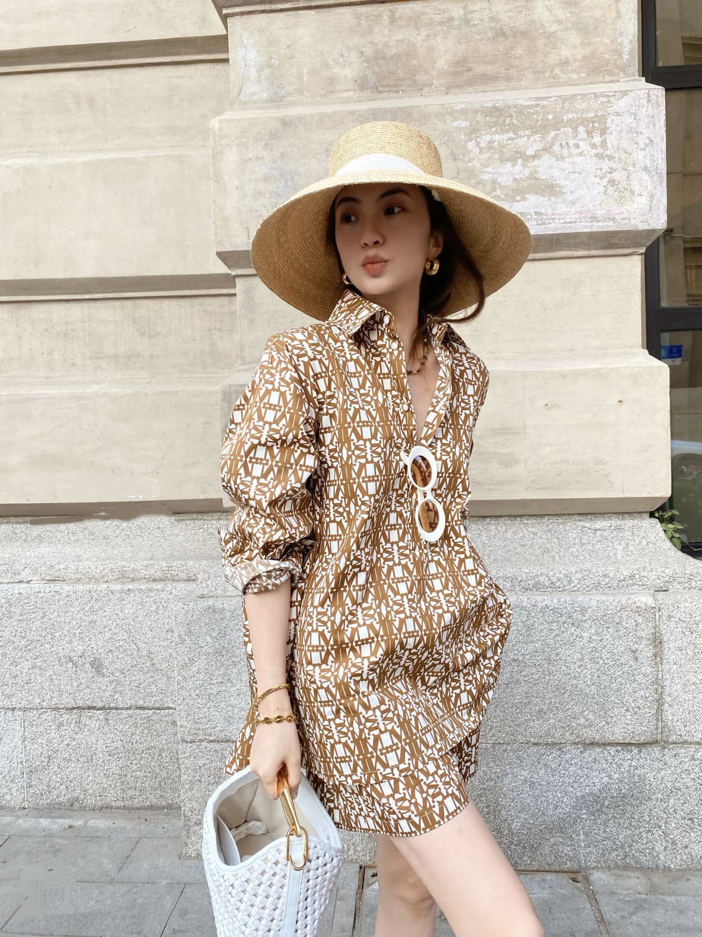 봄과 여름 2025 새로운 여성면 포플린 인쇄 셔츠 반바지 원피스스토어 가기