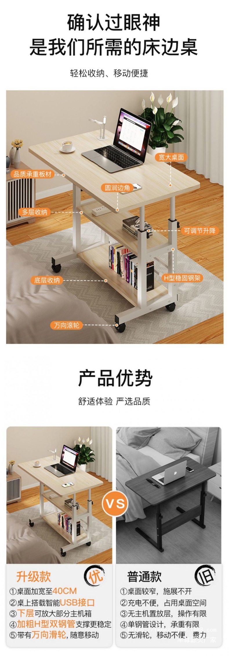 간단한 침대 옆 테이블 리프팅 테이블 다기능 리프팅 및 높이 조절 침대 옆 테이블 노트북 스탠드 침대스토어 가기