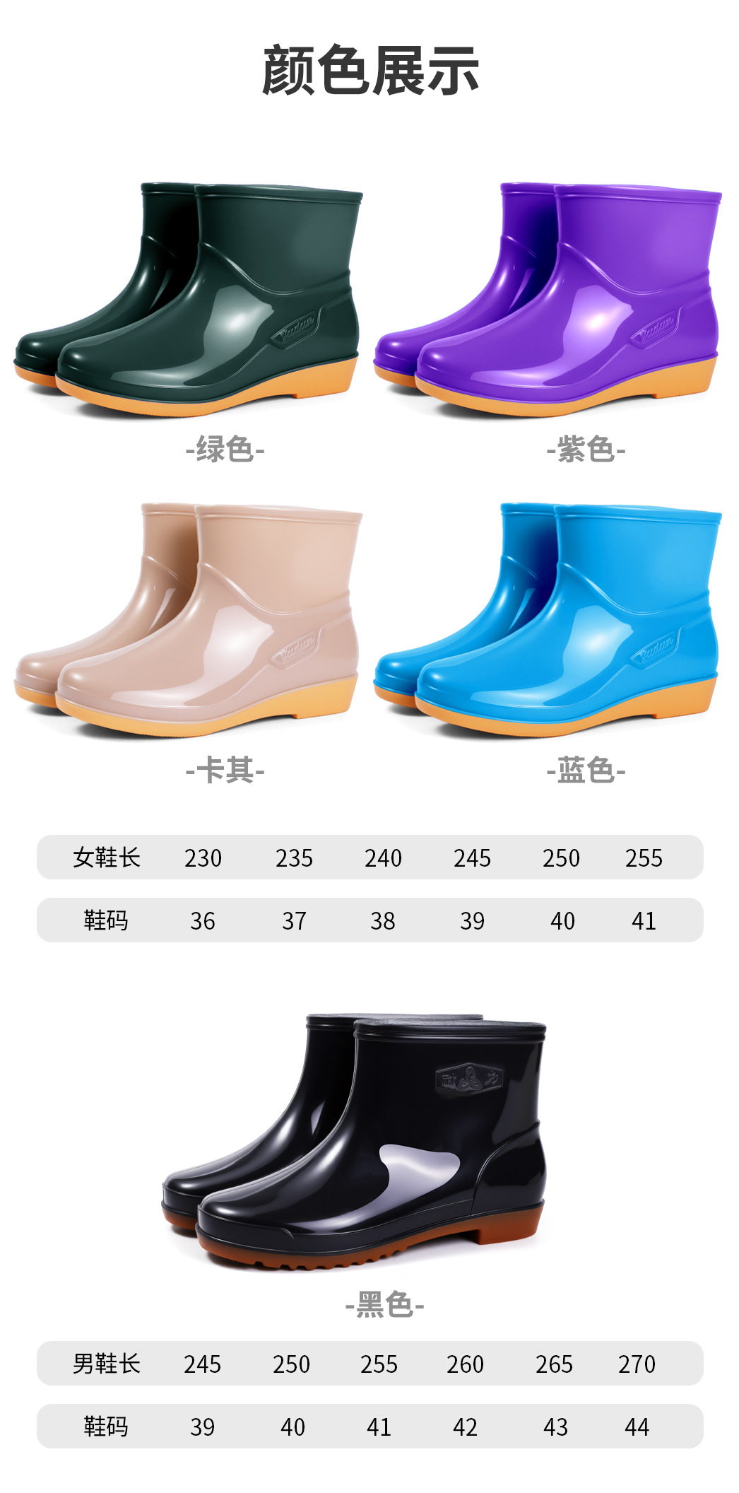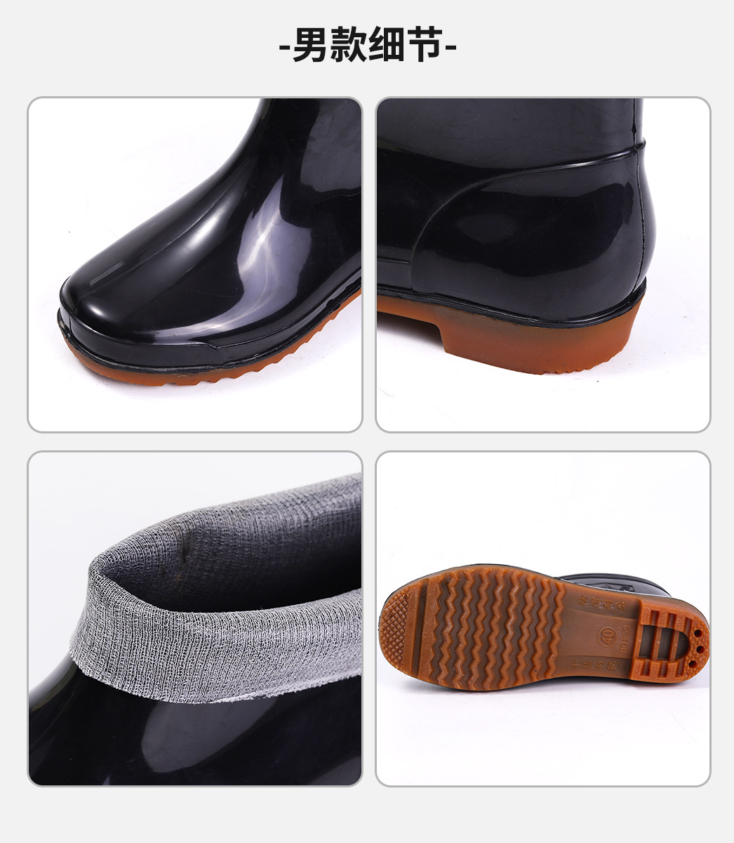 짧은 튜브 노동 보호 검정색 남성용 장화 여성용 장화 미끄럼 방지 주방 청소 힘줄 바닥 워터 슈즈 남성용 고무 신발