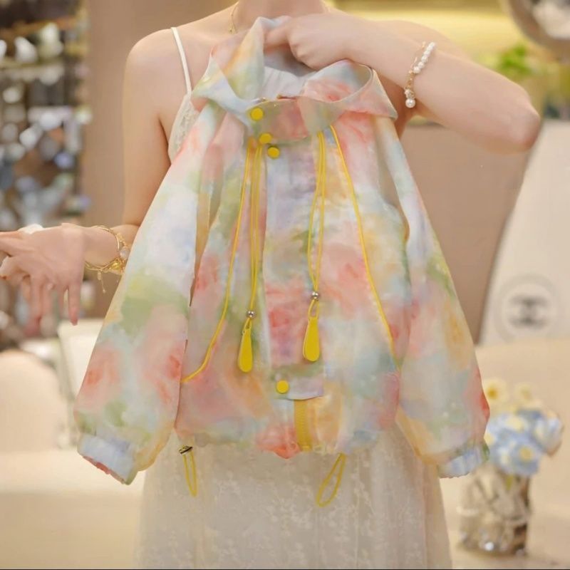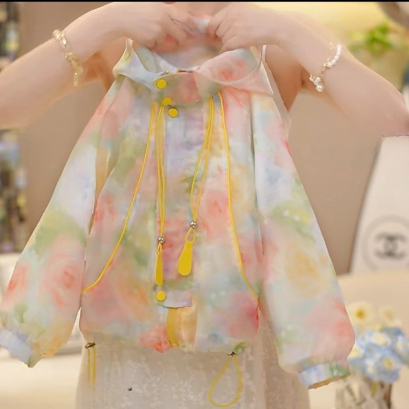 여자 여름 코트 아기의 서양식 어린이 안티 인격 유행 브랜드 신선한 건조 꽃 후드 야외 카디건 겉옷