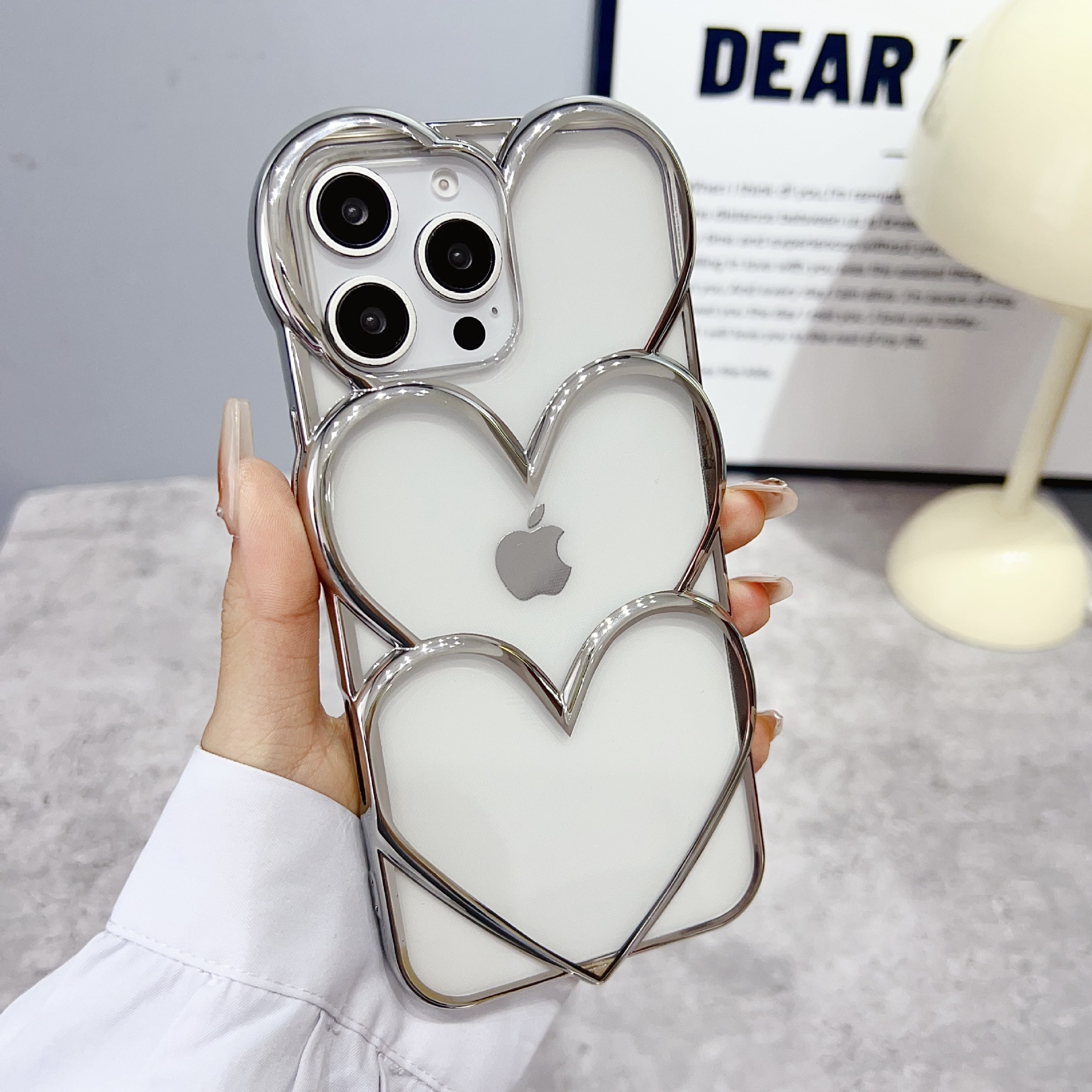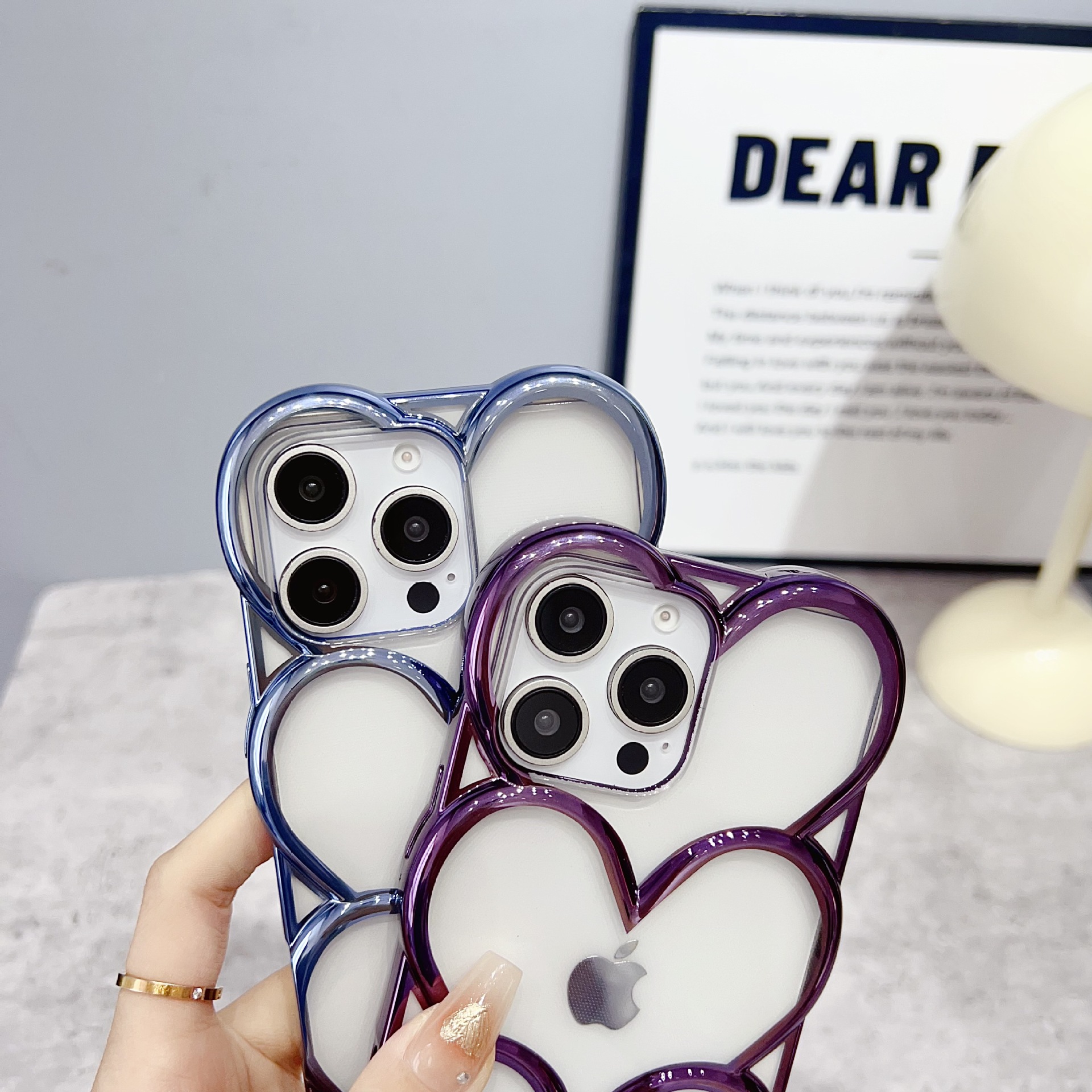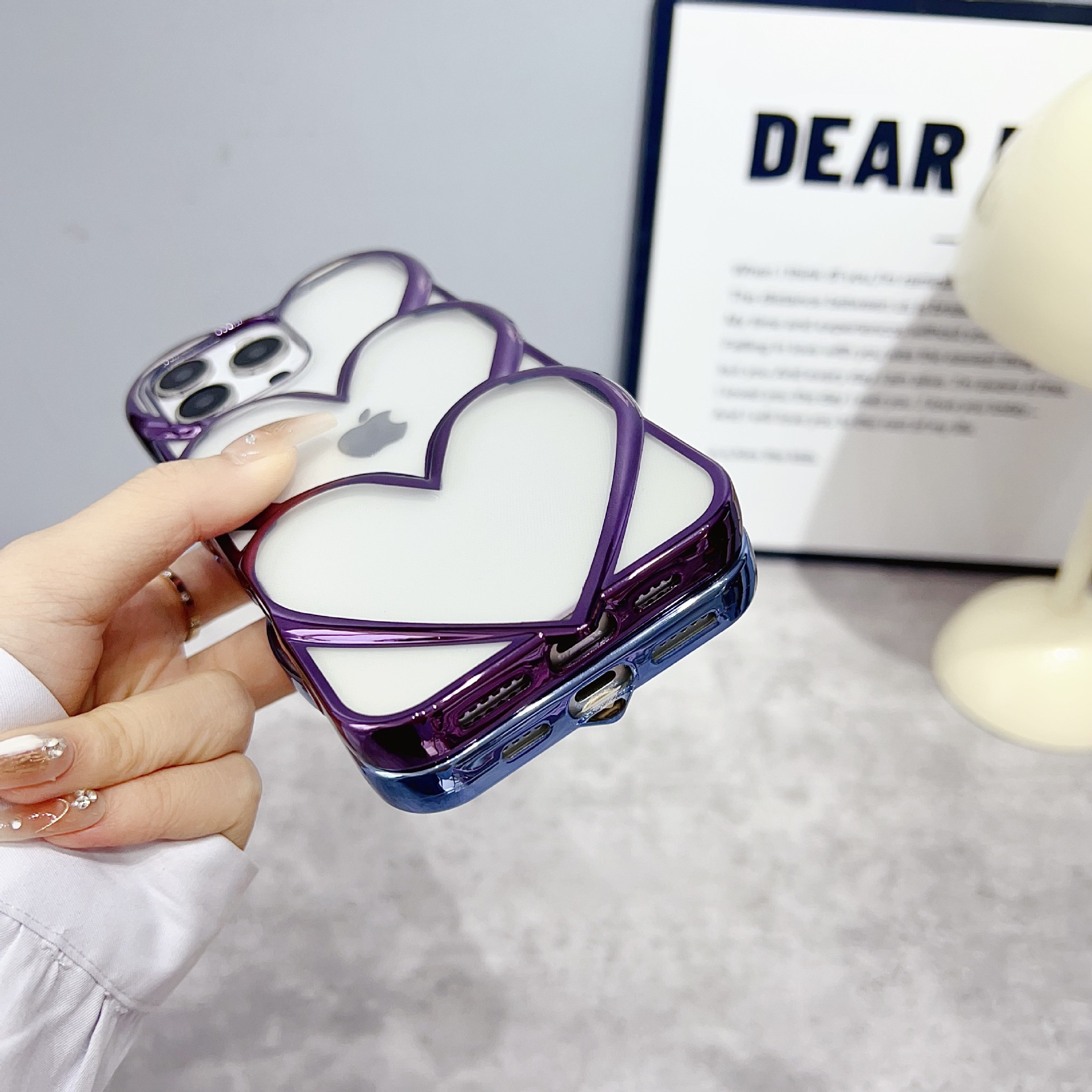 고급스러운 입체 도금 하트 모양의 아이폰 16프로맥스용 창의적인 아이폰17에어 휴대폰 케이스 15/14스토어 가기