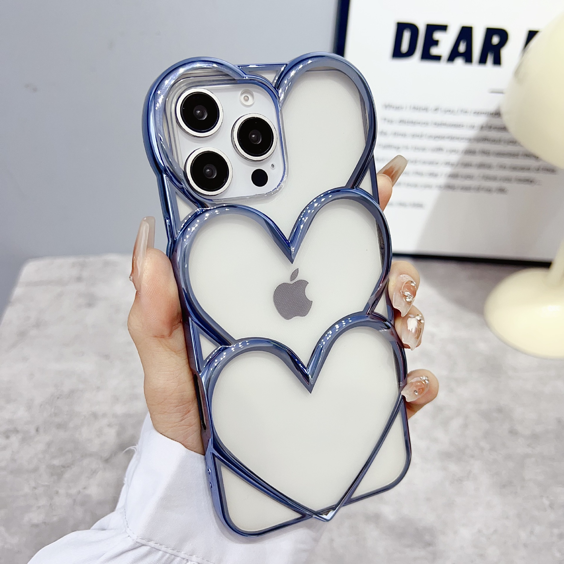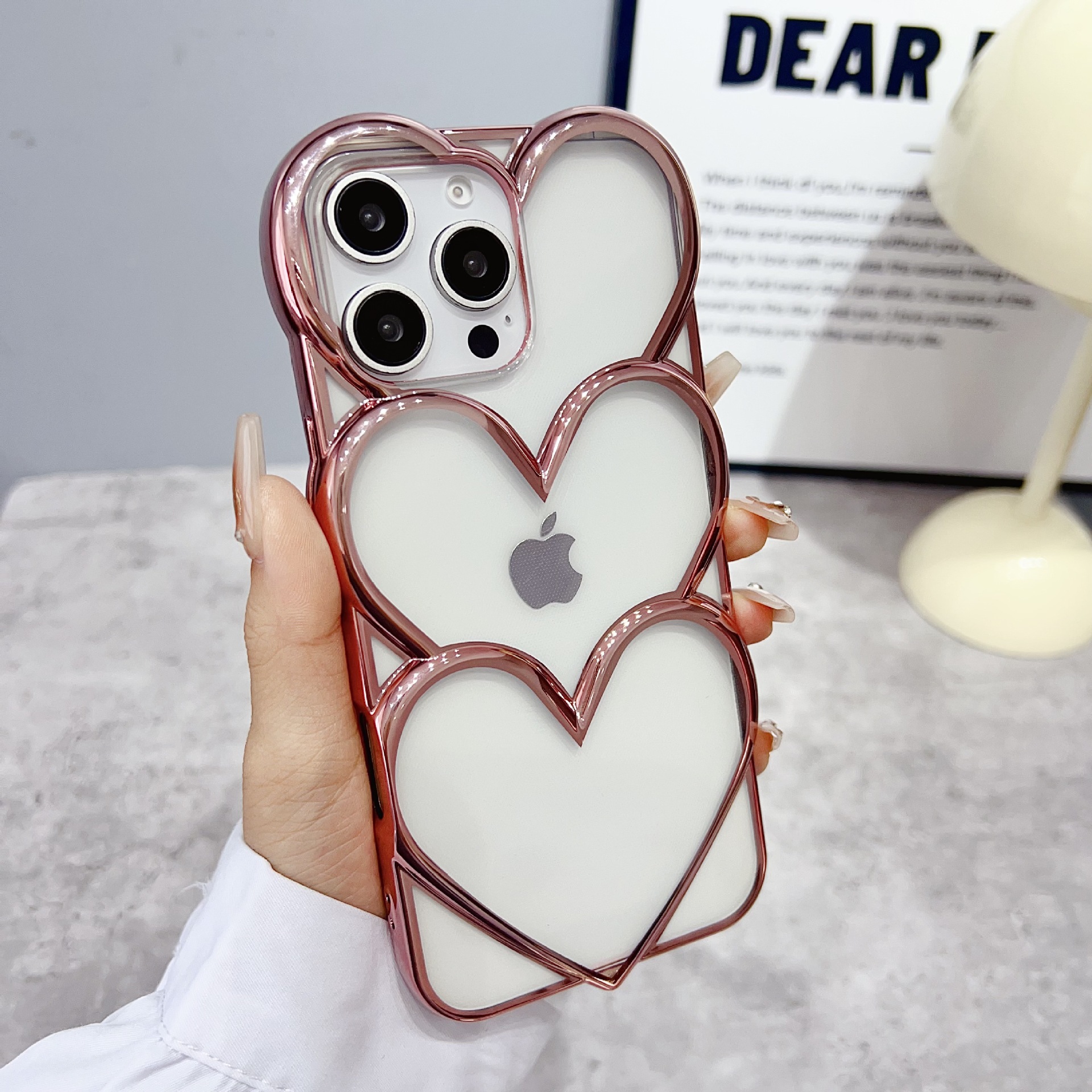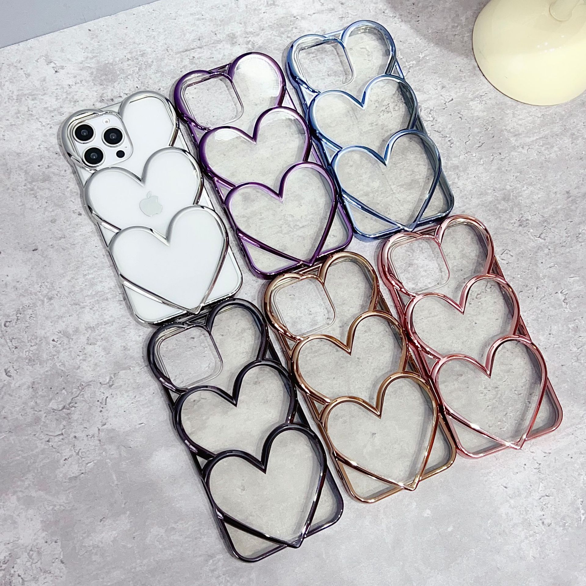 고급스러운 입체 도금 하트 모양의 아이폰 16프로맥스용 창의적인 아이폰17에어 휴대폰 케이스 15/14스토어 가기