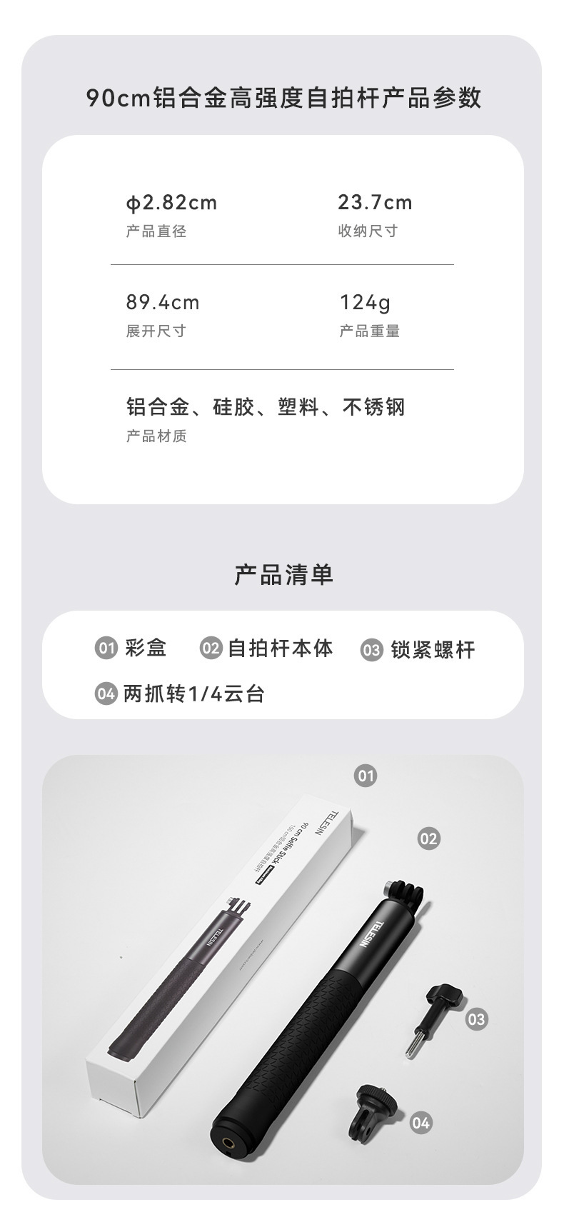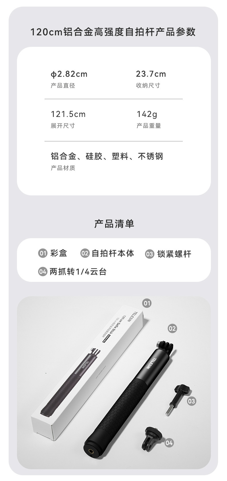 TELESIN 촬영 셀카 스틱 브래킷 0.9m1.2m1.5m 라이브 사진 비디오 휴대 전화 유니버설 셀카 스틱스토어 가기
