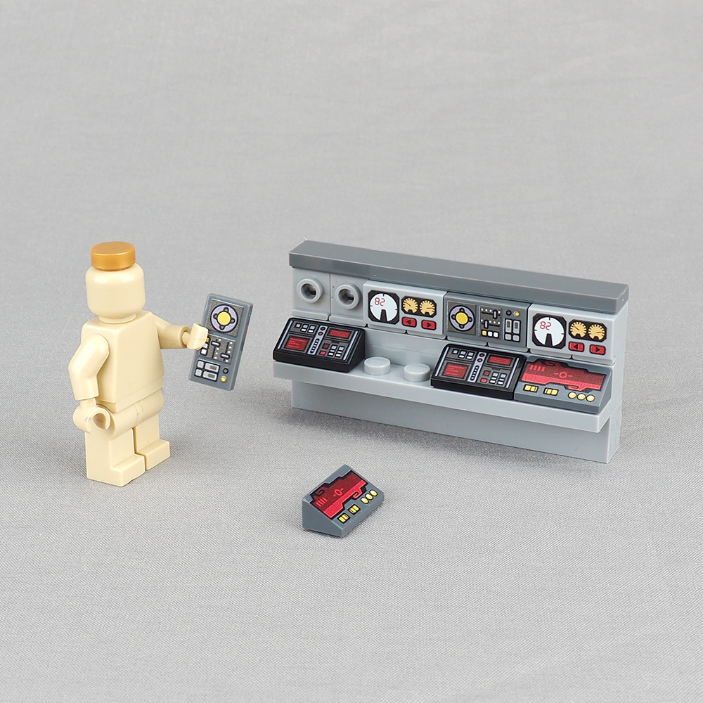 국경 간 콘솔 버튼 데이터 빌딩 블록 조립 미니 피규어 메카 컨트롤 테이블 전투 장면 모델 작은 입자 장난감스토어 가기