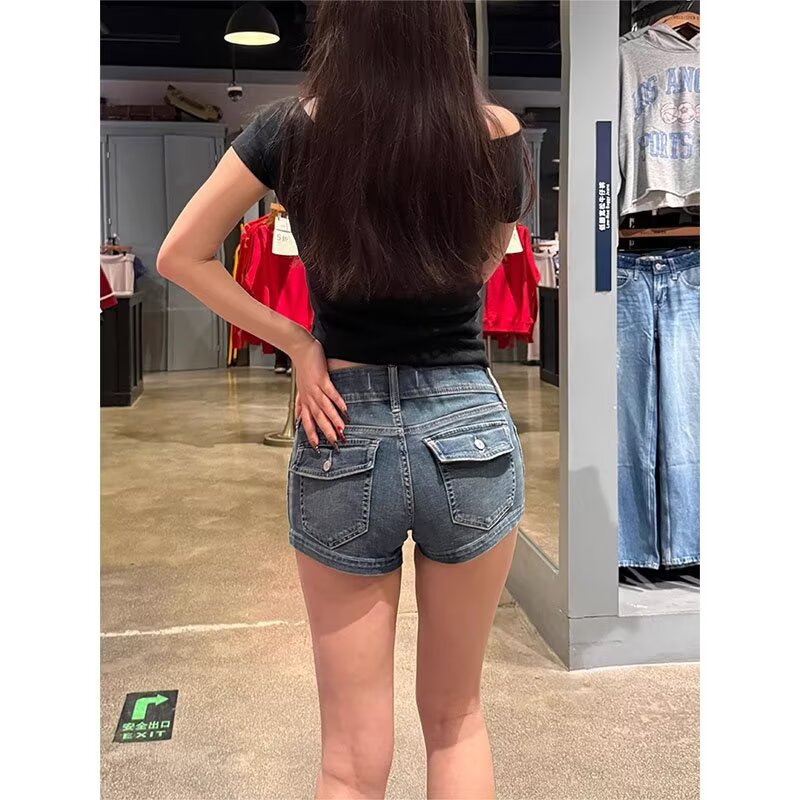 아메리칸 핫걸 하이웨이스트 섹시반바지, 핫팬츠, 청바지, 여성용 여름 진한 파란색 디자인 컬링 반바지스토어 가기