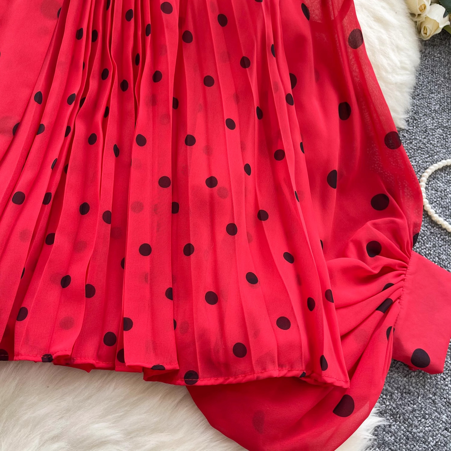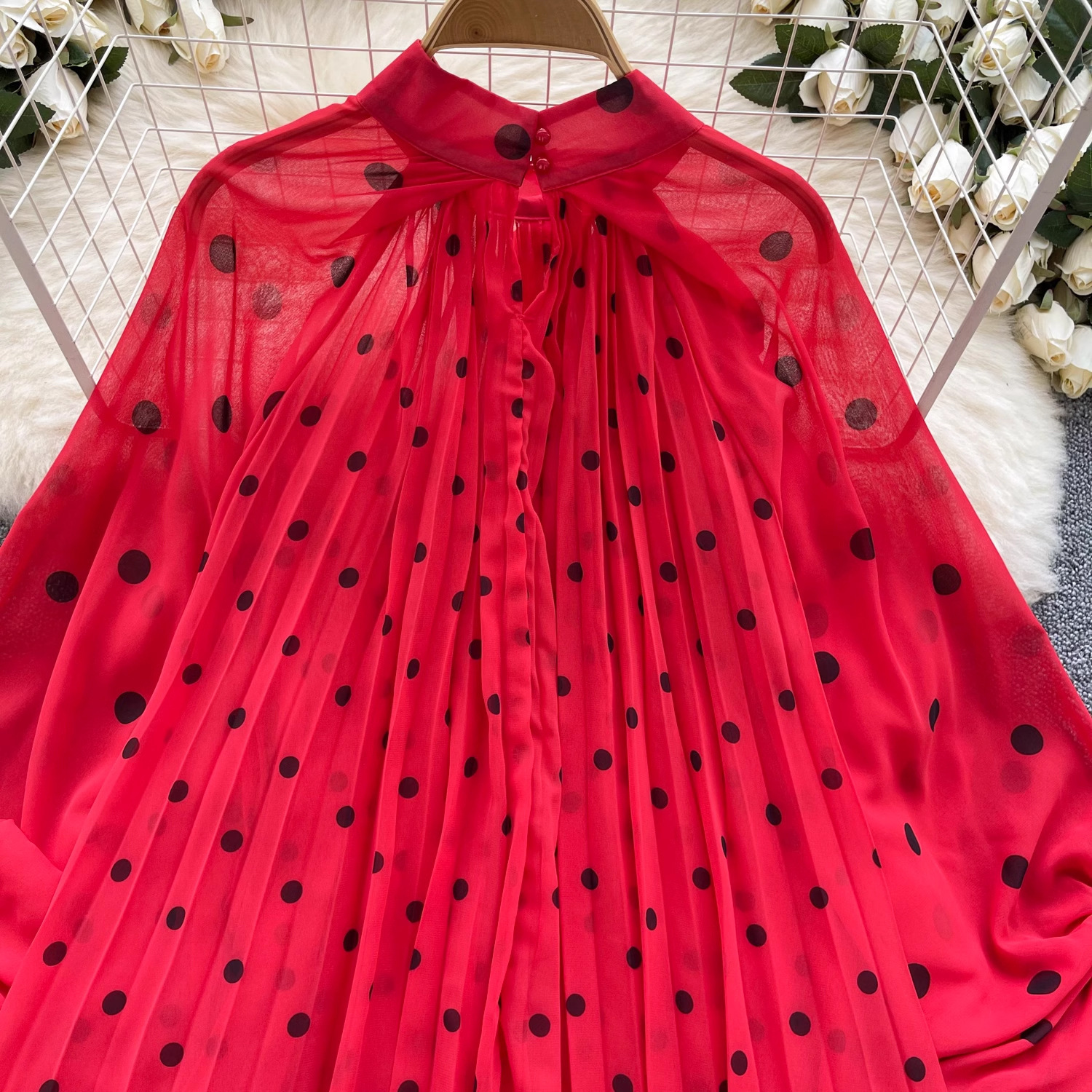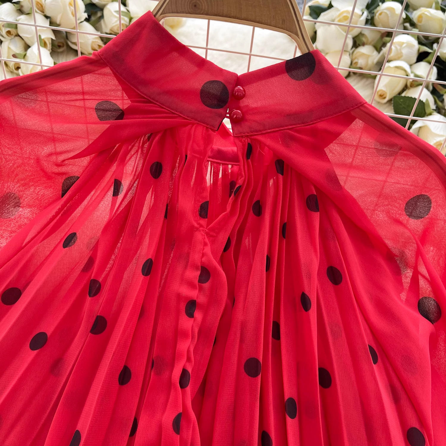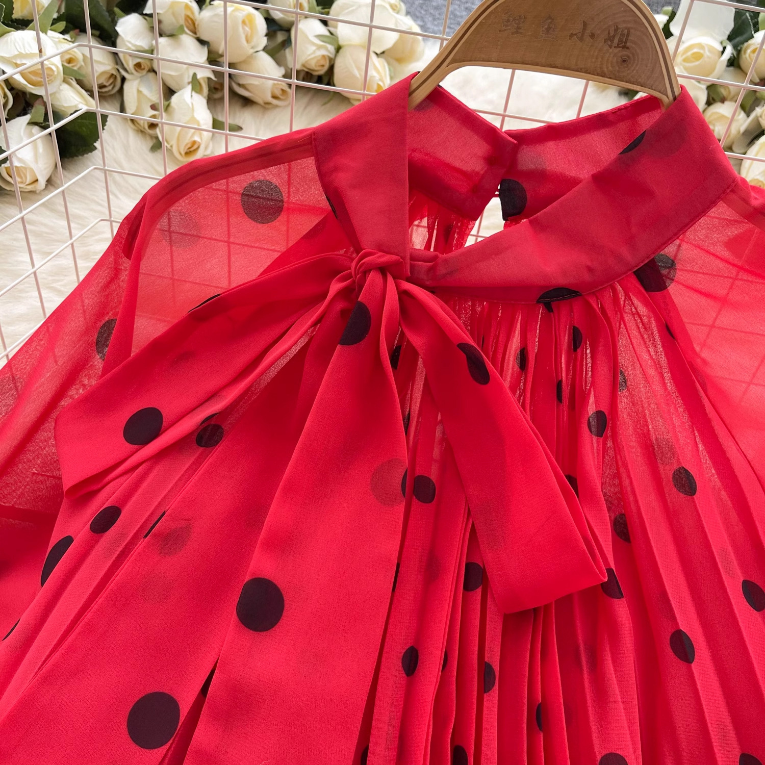 유럽과 미국 스타일 최고의 여자 가을 올 매치 쉬폰 셔츠 유행 활 스트랩 랜턴 슬리브 폴라 도트 셔츠 여성