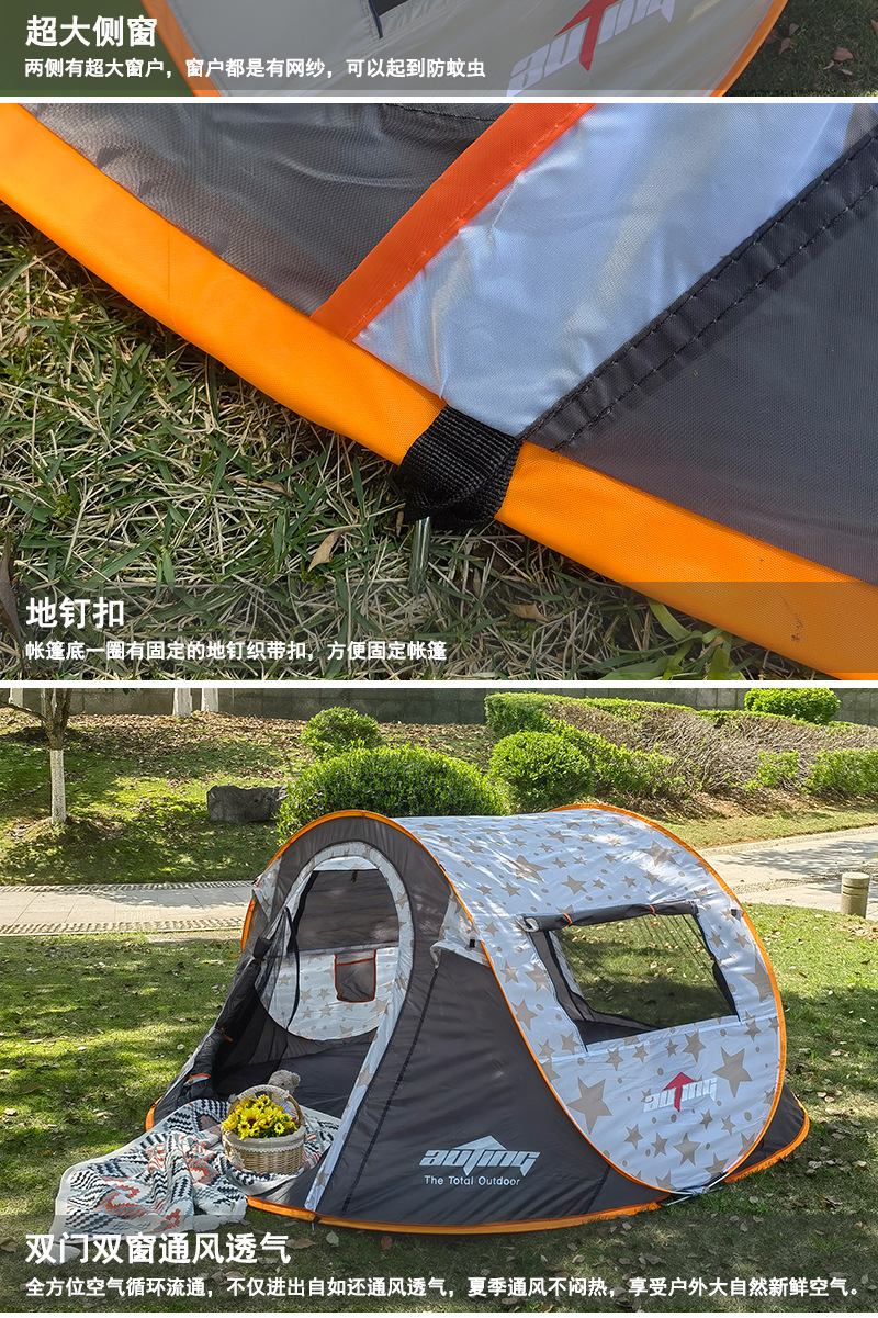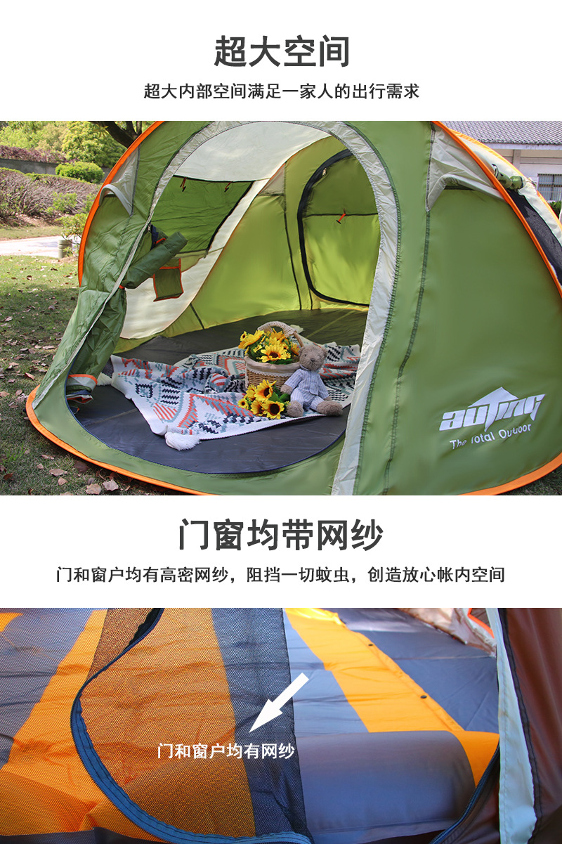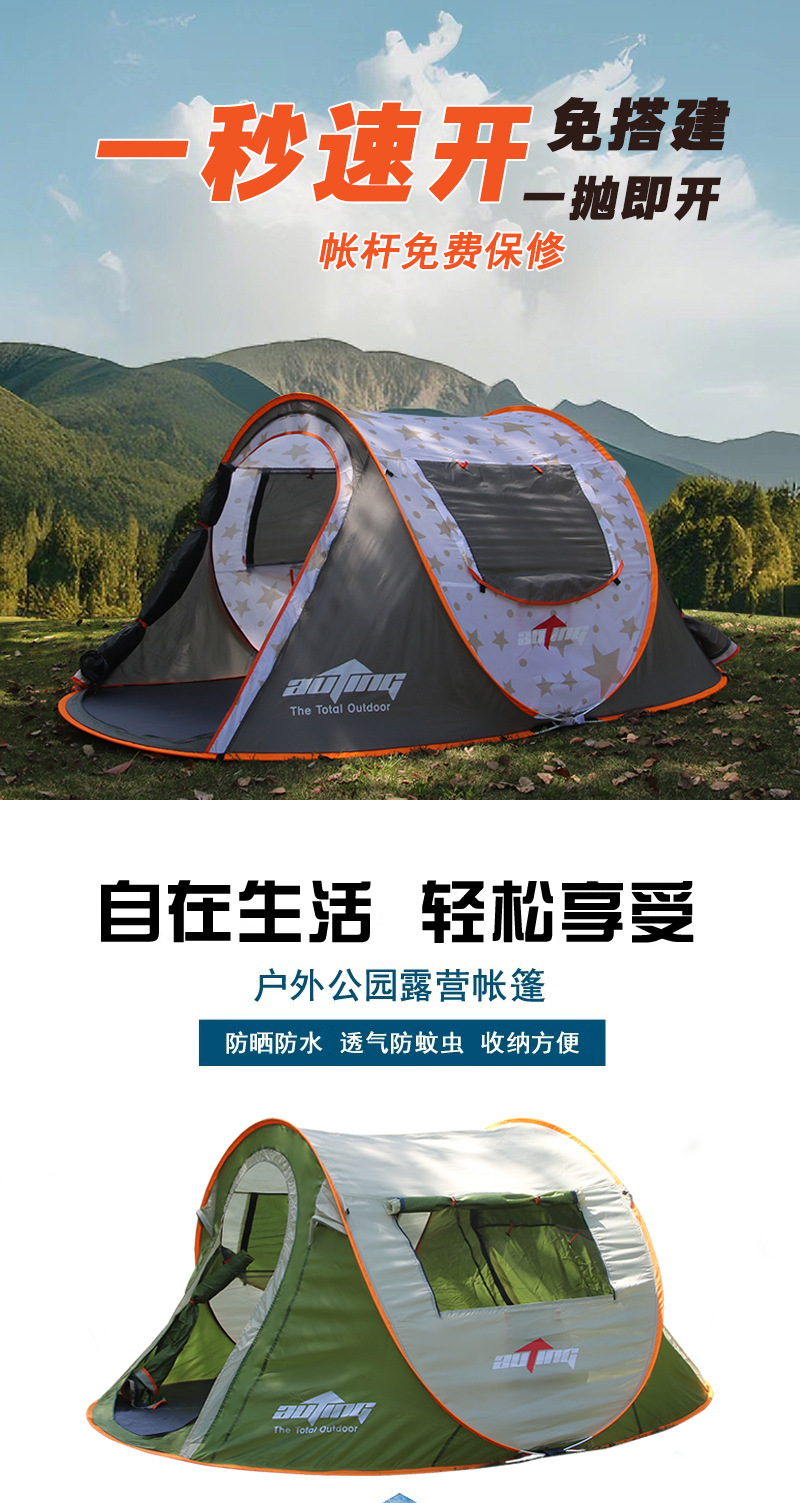 완전 자동 야외 야외 야외 캠핑 손 던지기 빠른 오프닝 텐트 공원 해변 방풍 방수 자외선 차단제 텐트