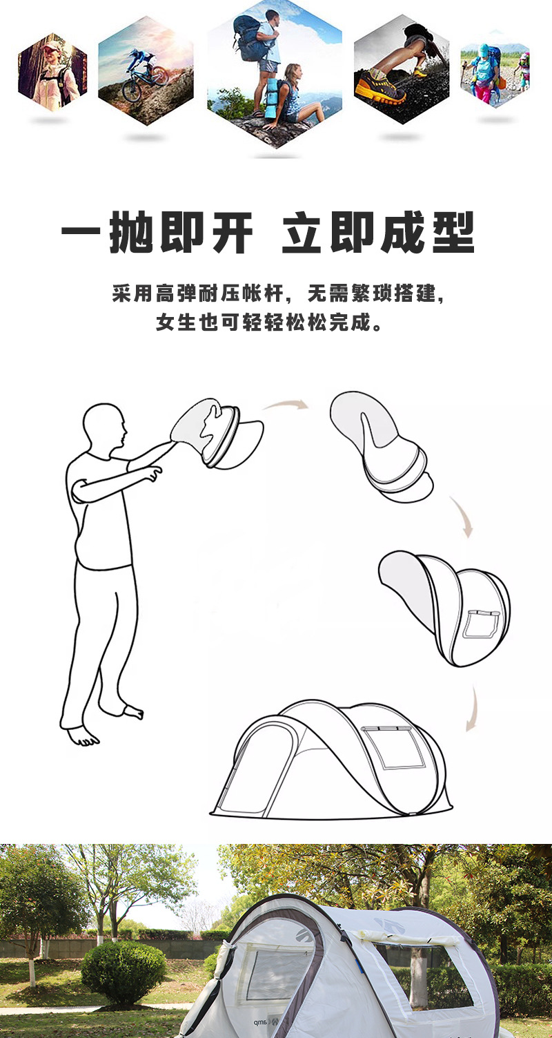 완전 자동 야외 야외 야외 캠핑 손 던지기 빠른 오프닝 텐트 공원 해변 방풍 방수 자외선 차단제 텐트스토어 가기