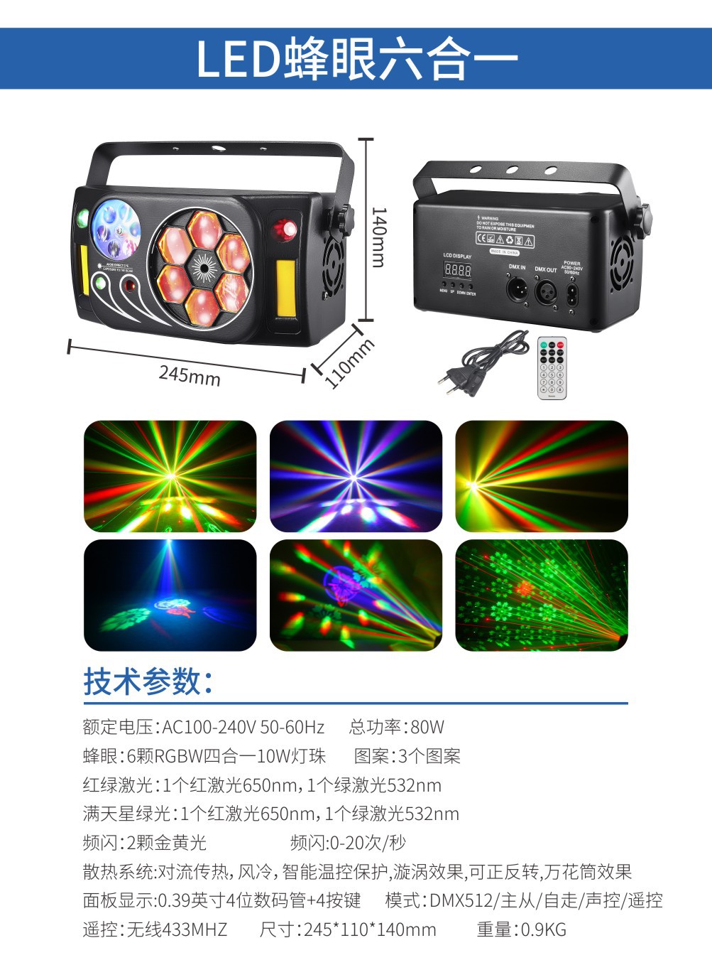 꿀벌 눈 6 대 1 패턴 빛 ktv 분위기 빛 엔터테인먼트 다채로운 회전 디스코 무대 빛 플래시 국경