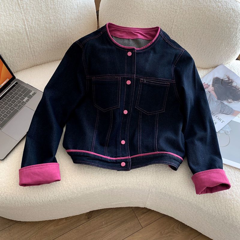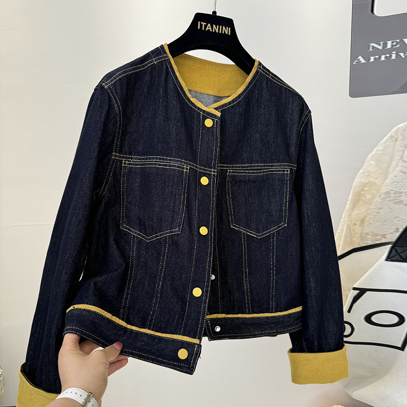 데님 재킷 여성 짧은 2025 새로운 봄 디자인 스플 라이스 캐주얼 슬림 재킷 루즈 데님 탑스토어 가기