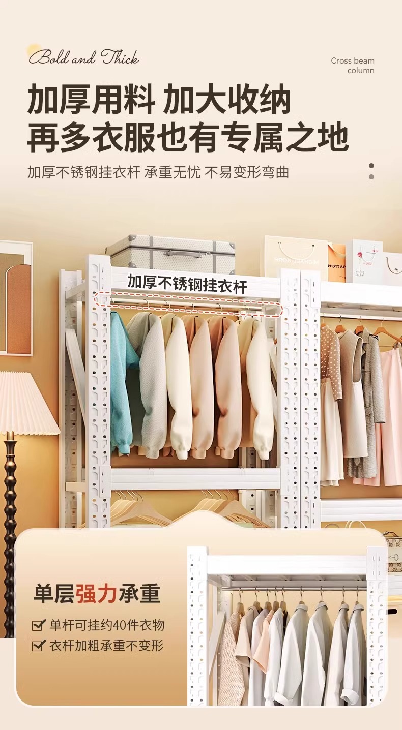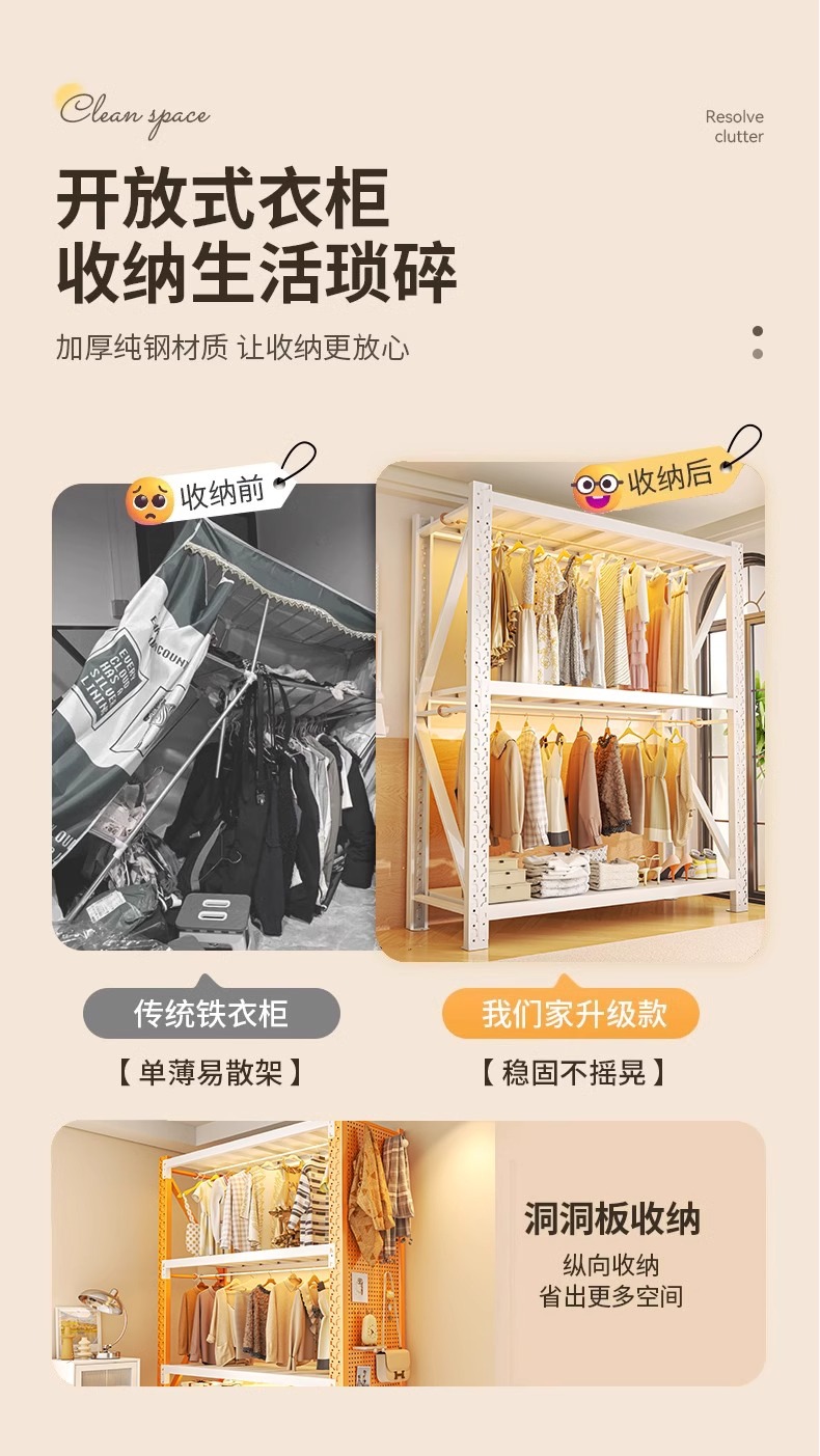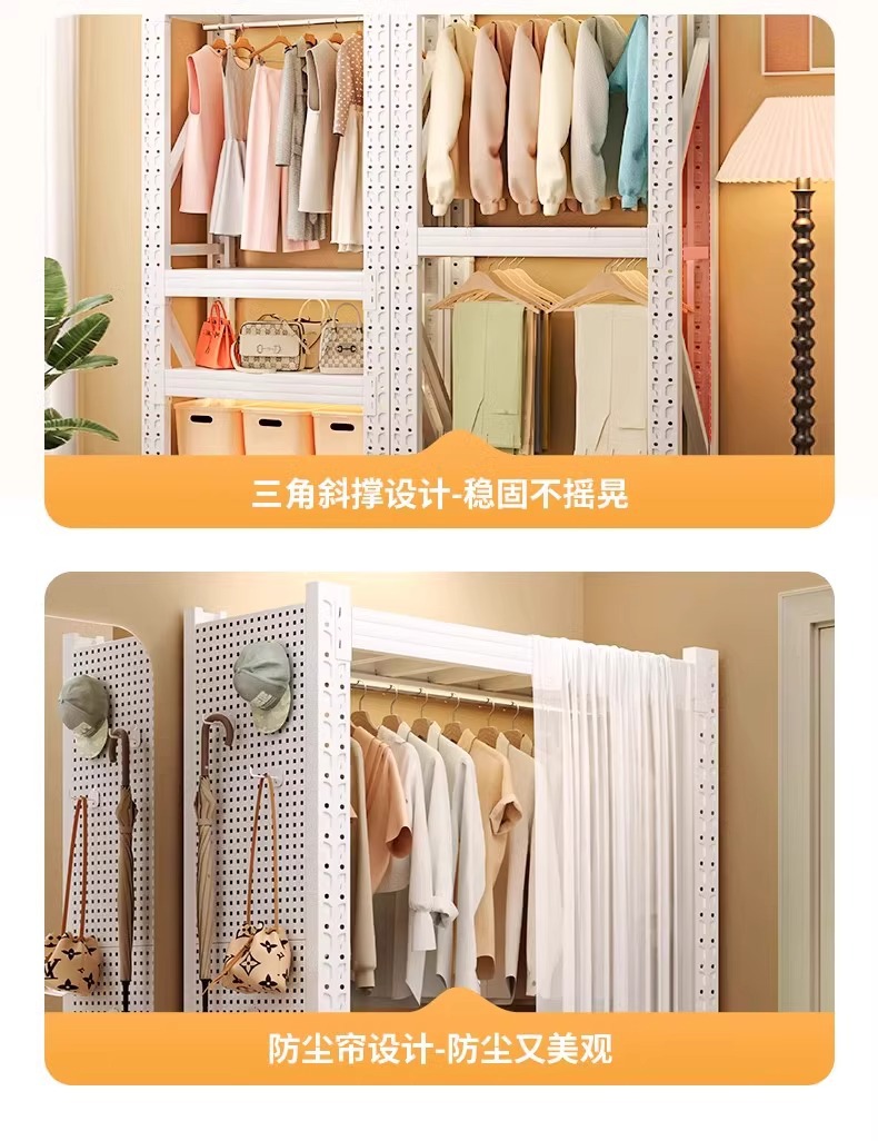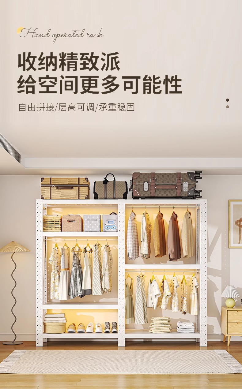 가정용 선반 옷장 침실 간단한 조립 코트 랙 오픈 플로어 홀 플레이트 앵글 스틸 걸이 보관 랙