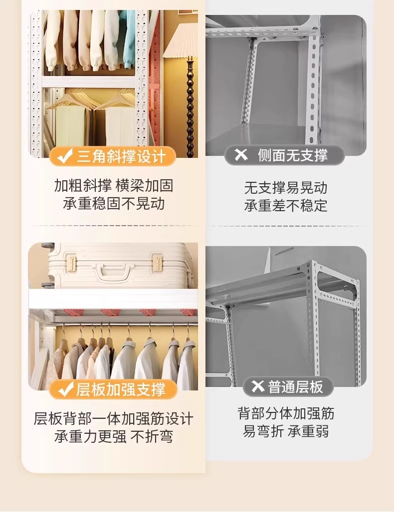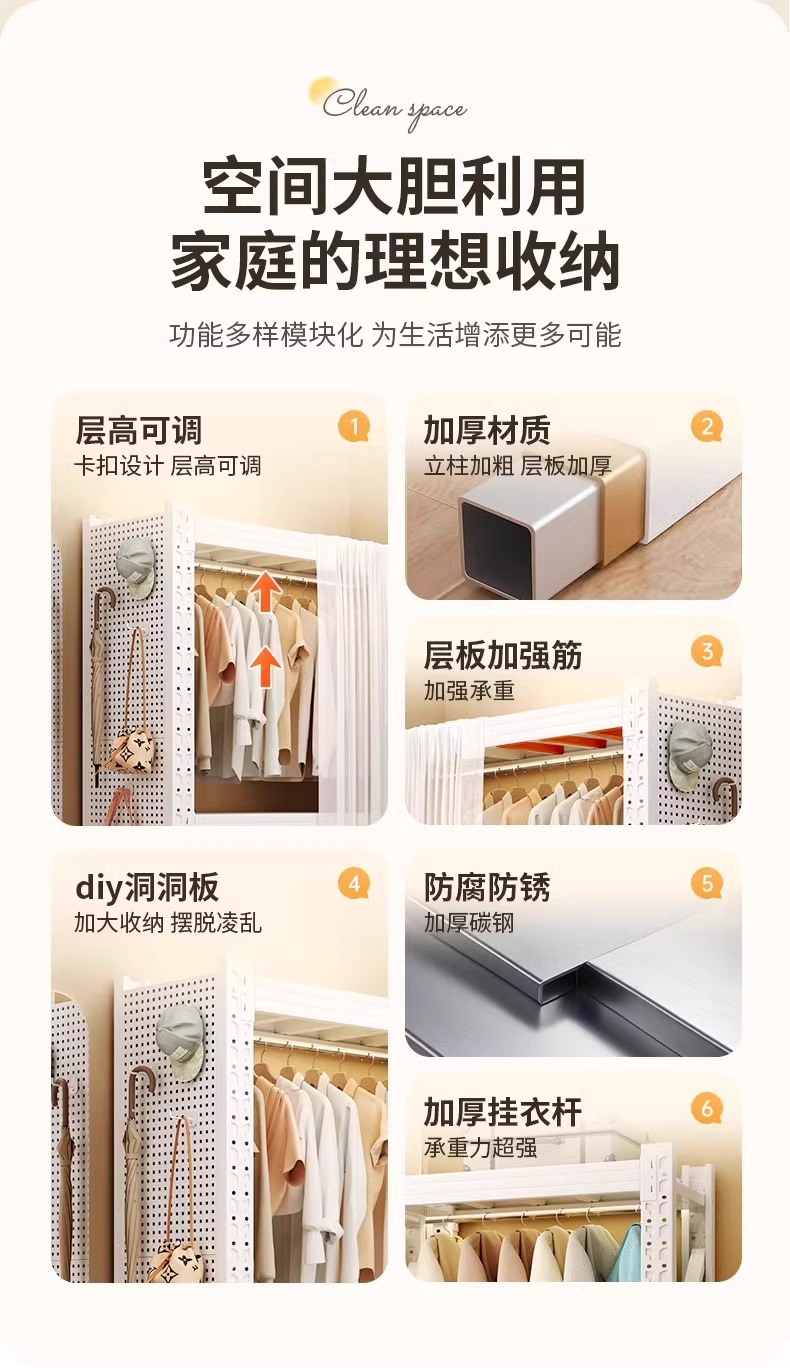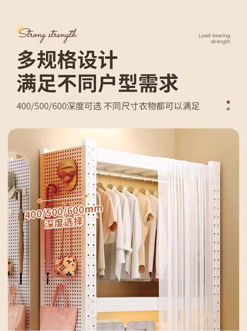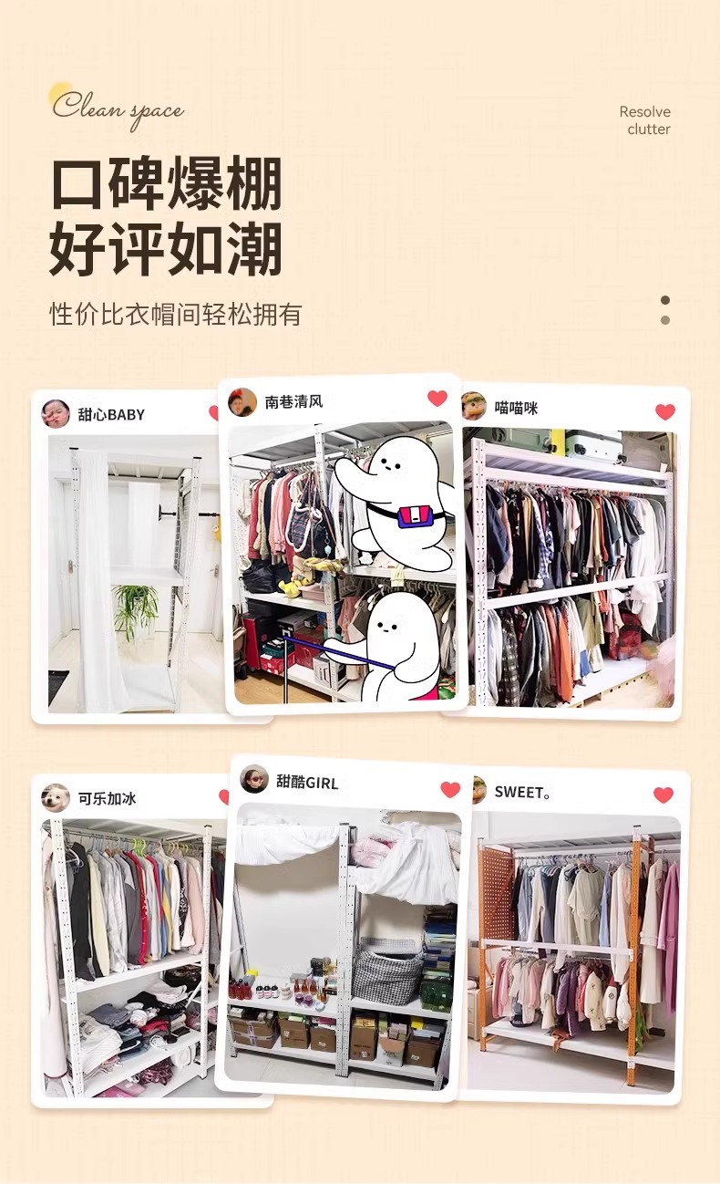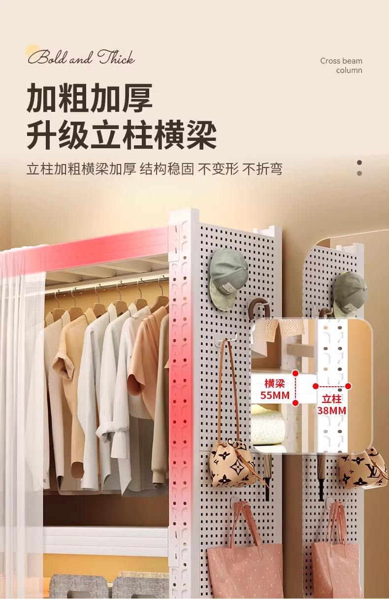 가정용 선반 옷장 침실 간단한 조립 코트 랙 오픈 플로어 홀 플레이트 앵글 스틸 걸이 보관 랙