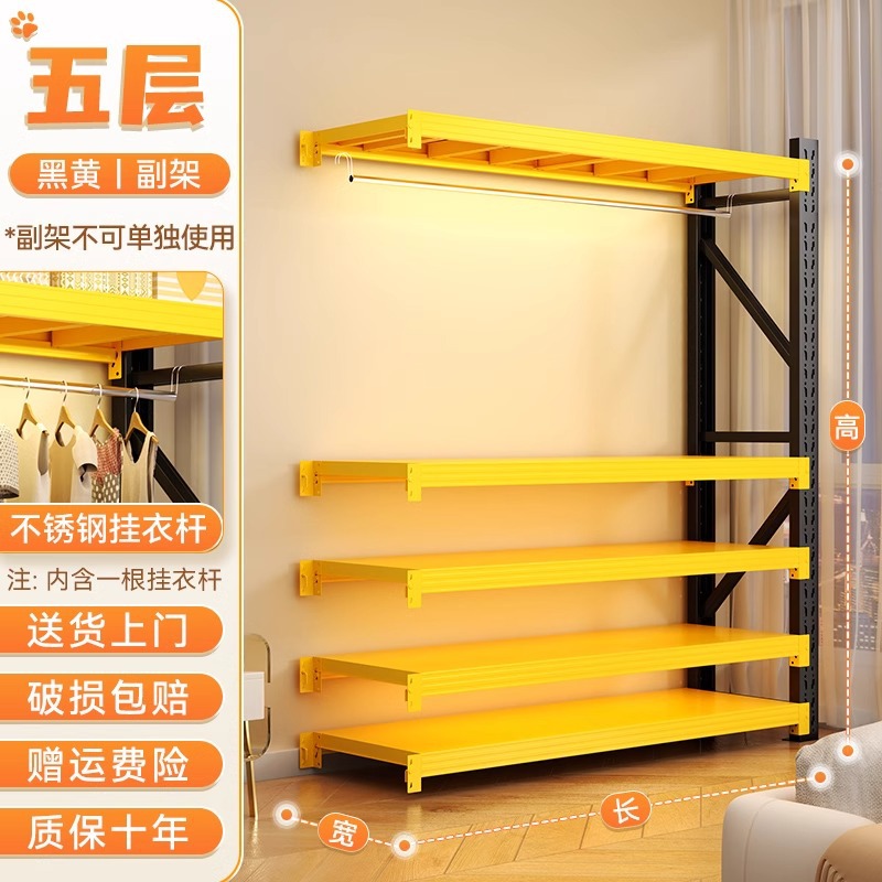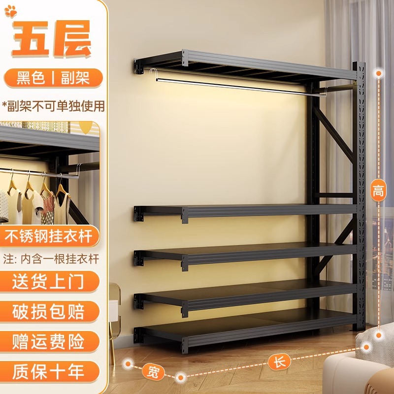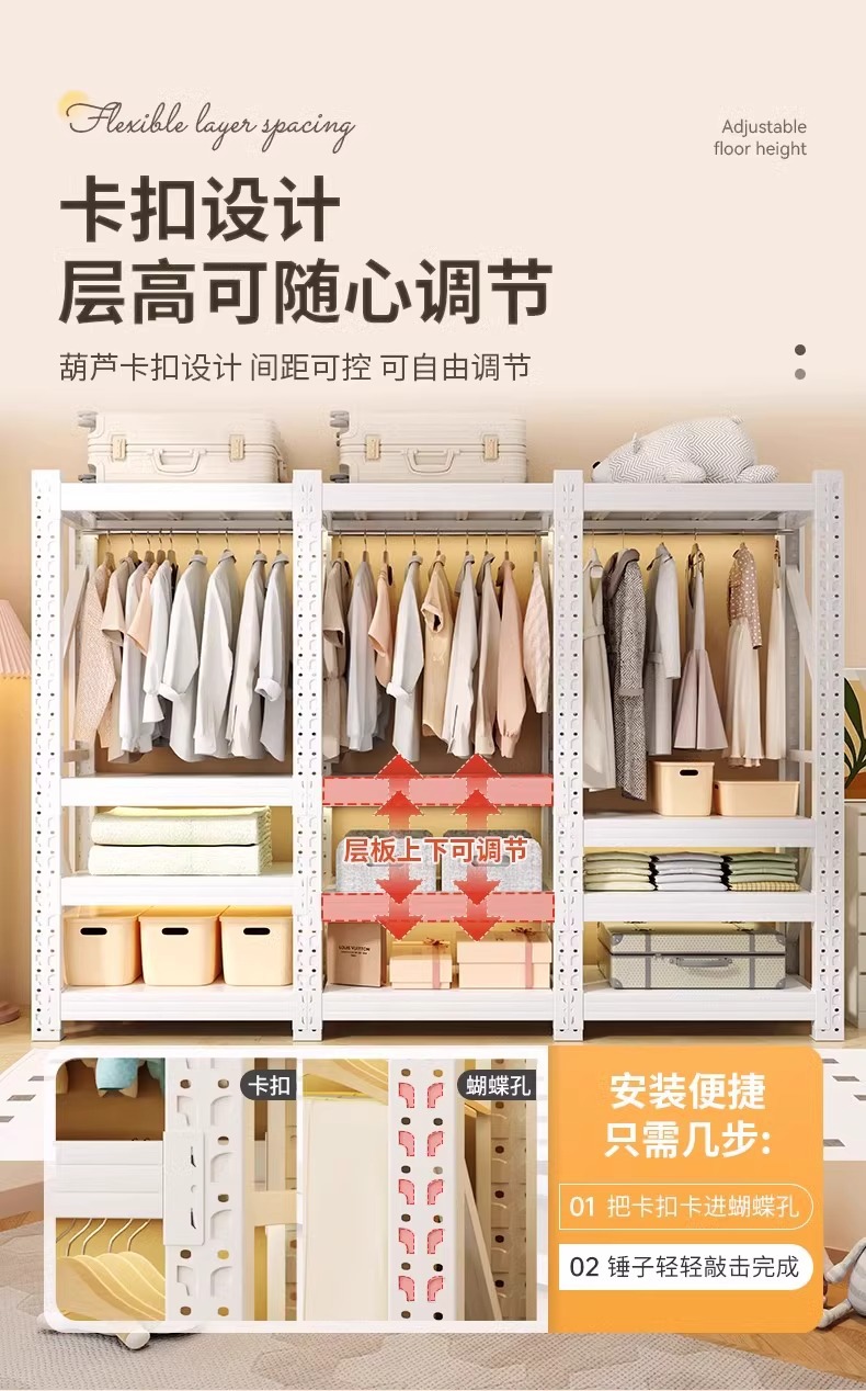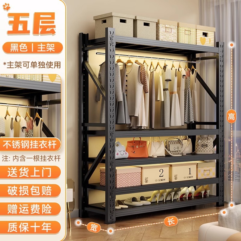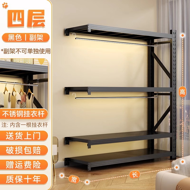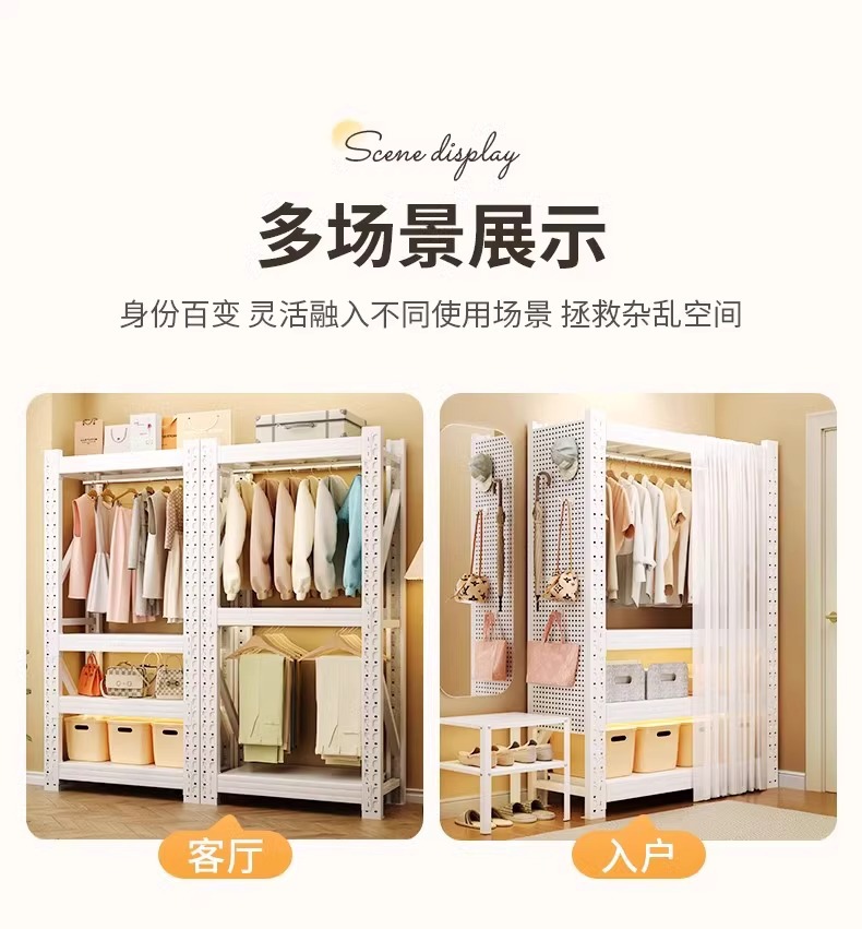 가정용 선반 옷장 침실 간단한 조립 코트 랙 오픈 플로어 홀 플레이트 앵글 스틸 걸이 보관 랙스토어 가기