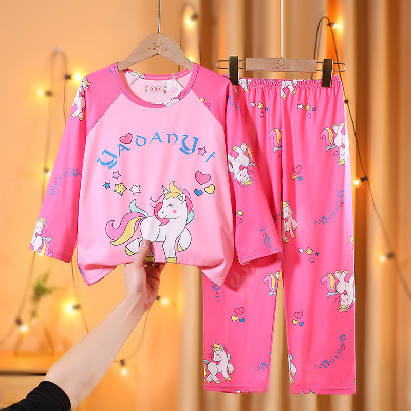 어린이 잠옷 긴팔 소녀 봄, 가을 소년과 소녀 얇은 양복 소녀 중대형 어린이 만화 가정복 가을