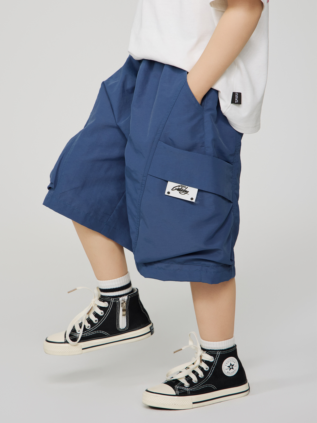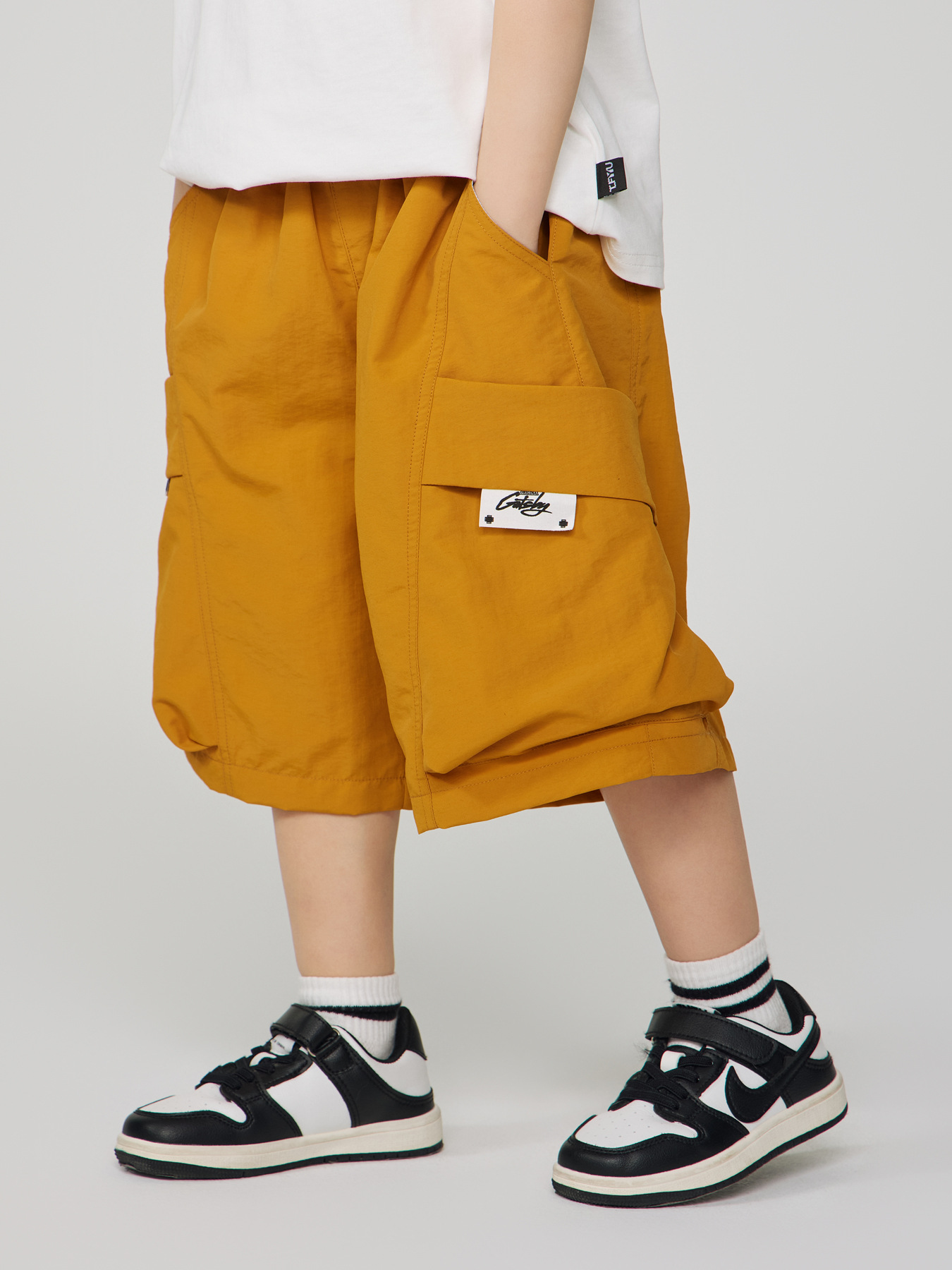 2025 여름 새로운 어린이 핸섬 라벨링 빠른 건조 5 점 바지 남자 빅 어린이 느슨한 올 매치 툴링 반바지 트렌디스토어 가기