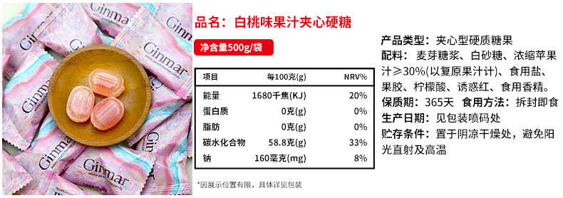 • 백도맛 주스가 가득 들어있는 하드캔디 500g (약 72개입)