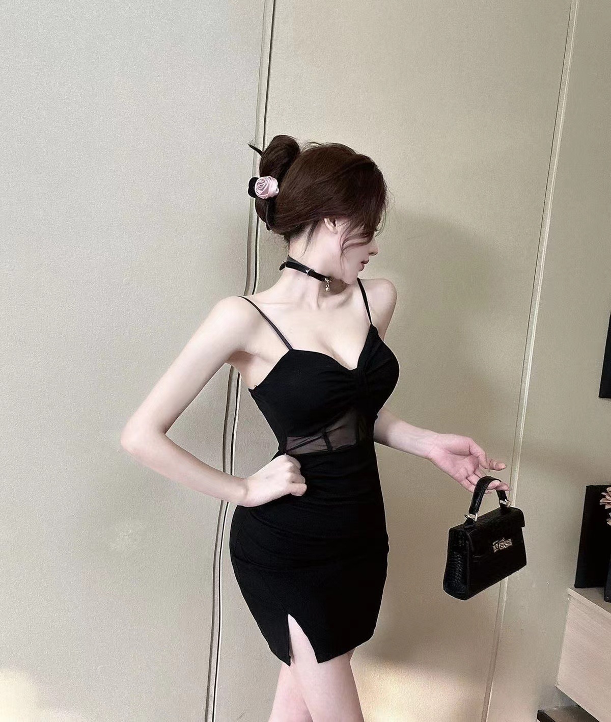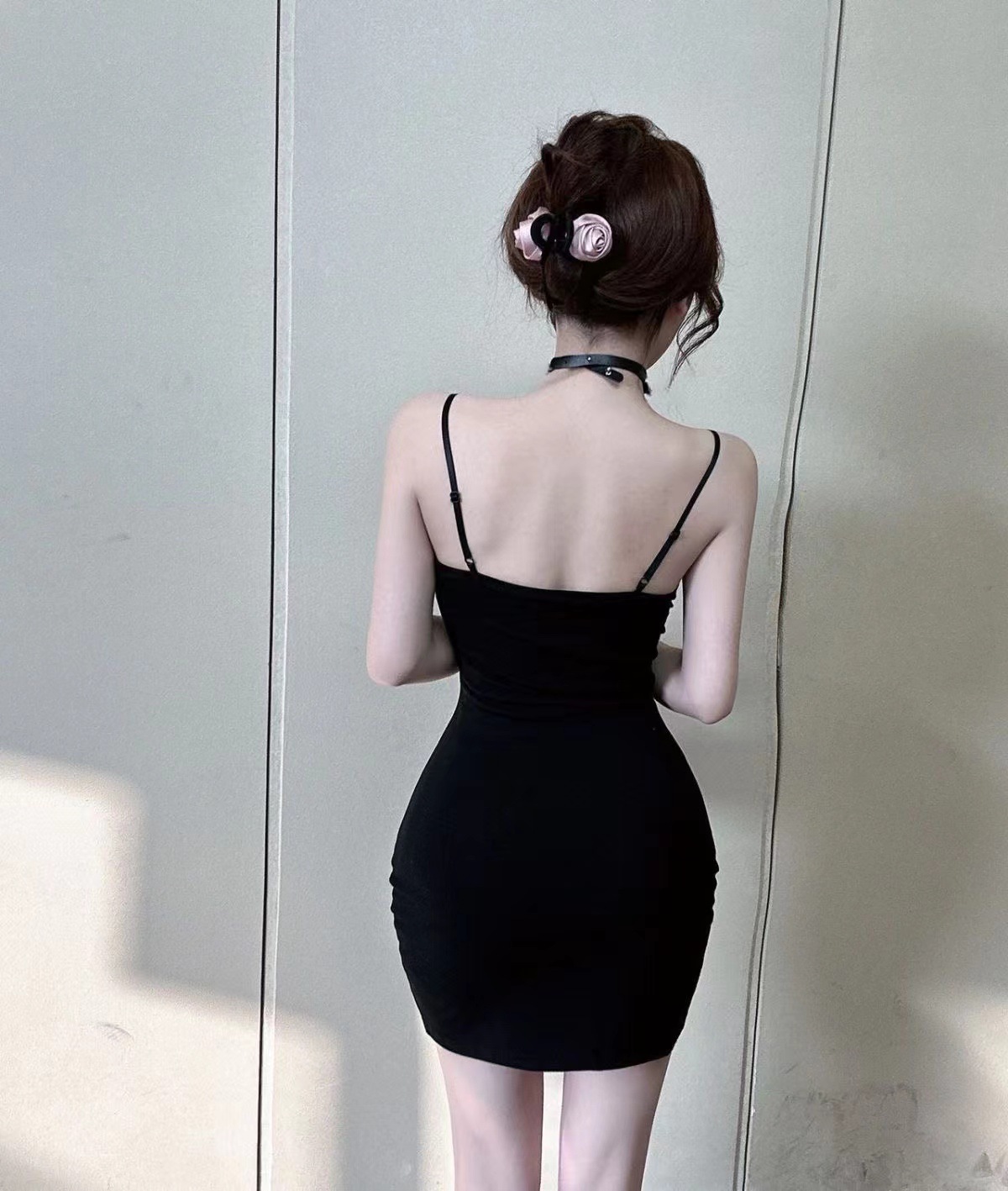 나이트 클럽 순수한 욕망 뜨거운 소녀 로우 컷 섹시한 서스펜더 슬릿 드레스 여름 새로운 스타일 백리스 가슴 패드 슬림 짧은 스커트 유행스토어 가기