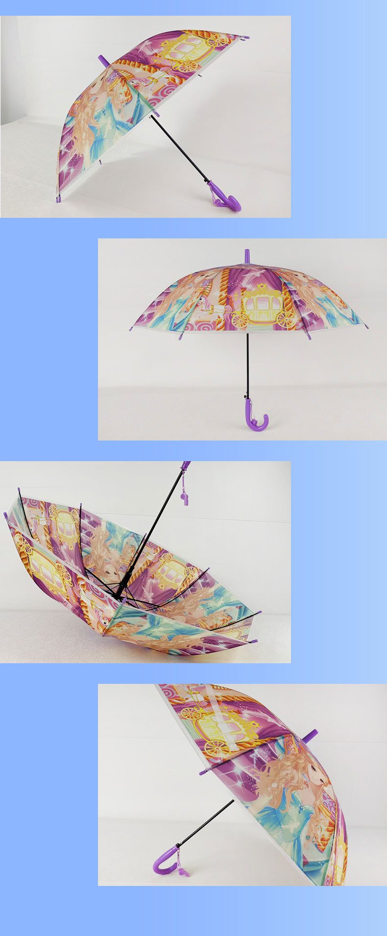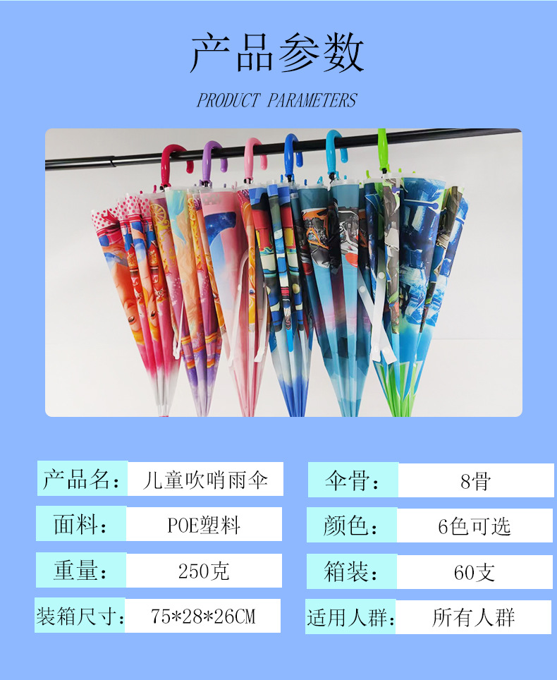 제조 업체 도매 만화 우산 어린이 비 또는 빛 유치원 귀여운 우산 어린이 긴 손잡이 휘파람 우산