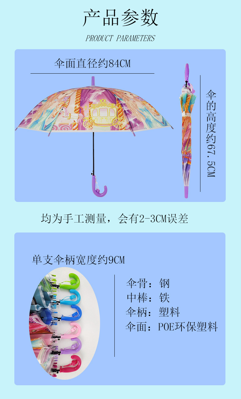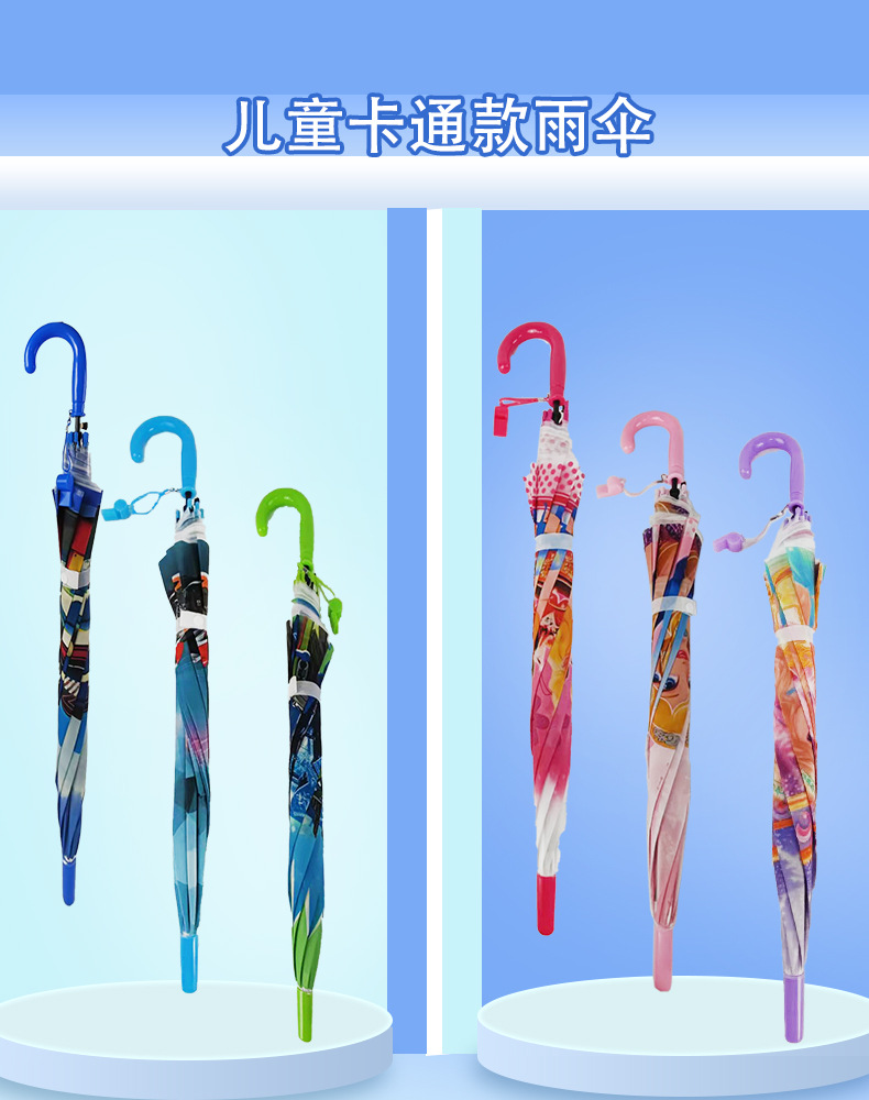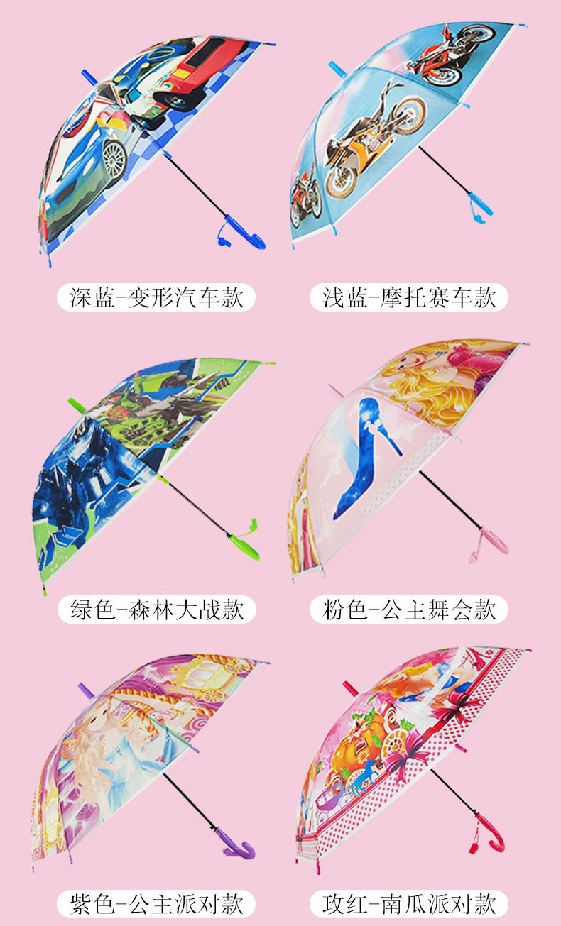 제조 업체 도매 만화 우산 어린이 비 또는 빛 유치원 귀여운 우산 어린이 긴 손잡이 휘파람 우산스토어 가기