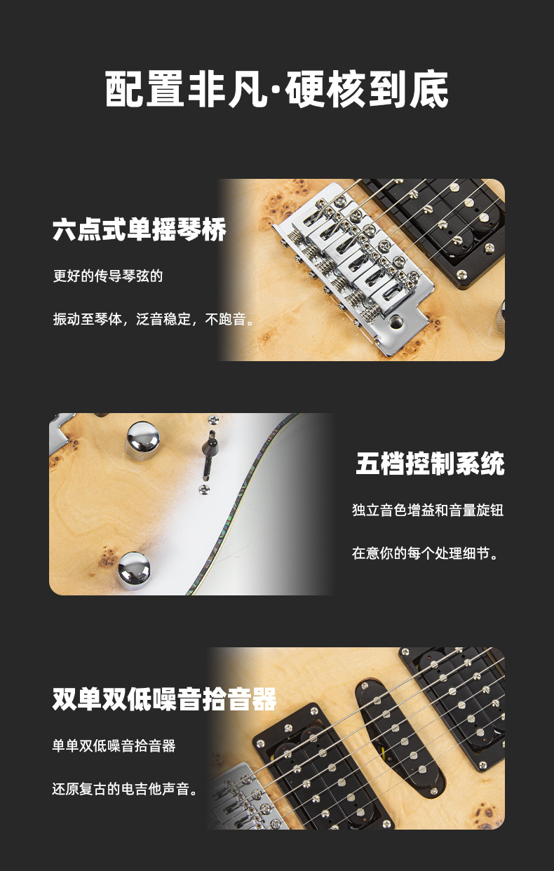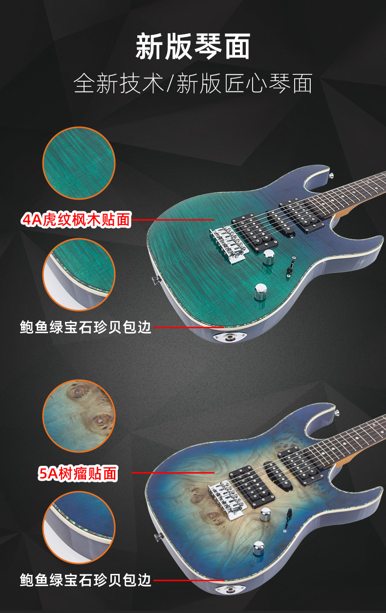 새로운 39inch 더블 싱글 및 더블 일렉트릭 기타 트리거 뿌리 패턴 베니어 고가 일렉트릭 기타 일렉트릭 기타