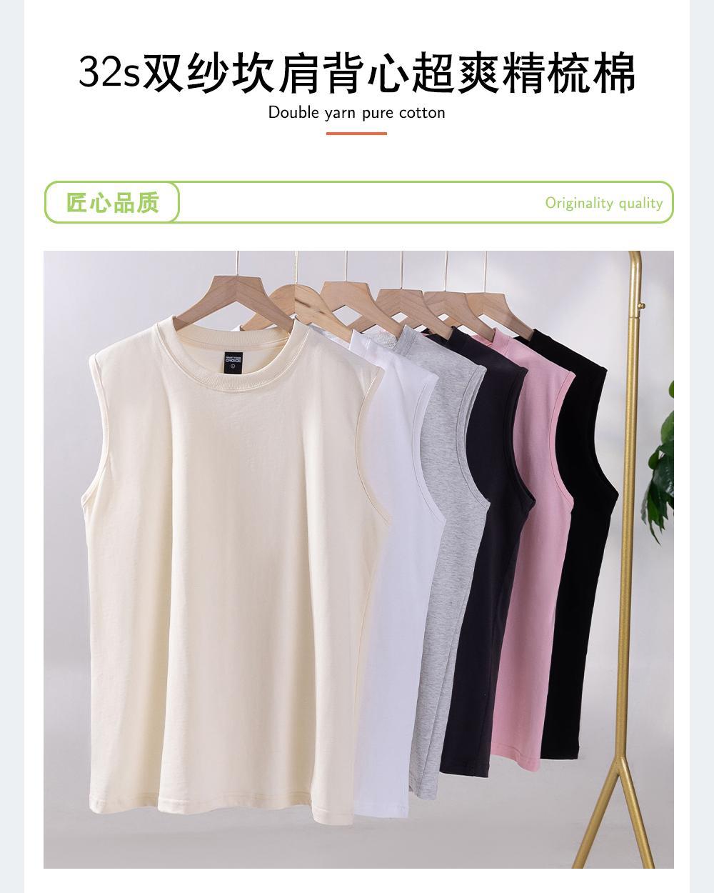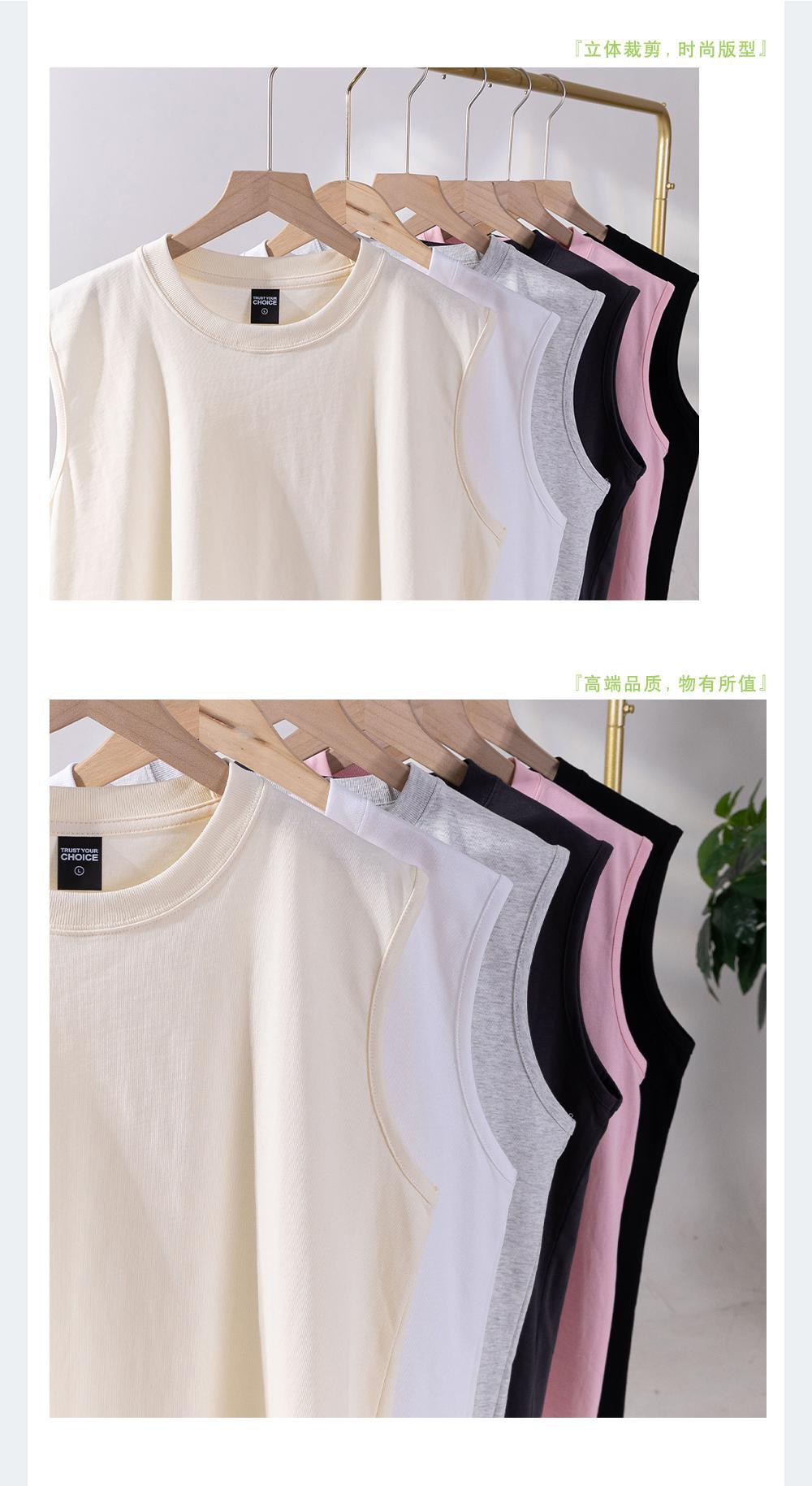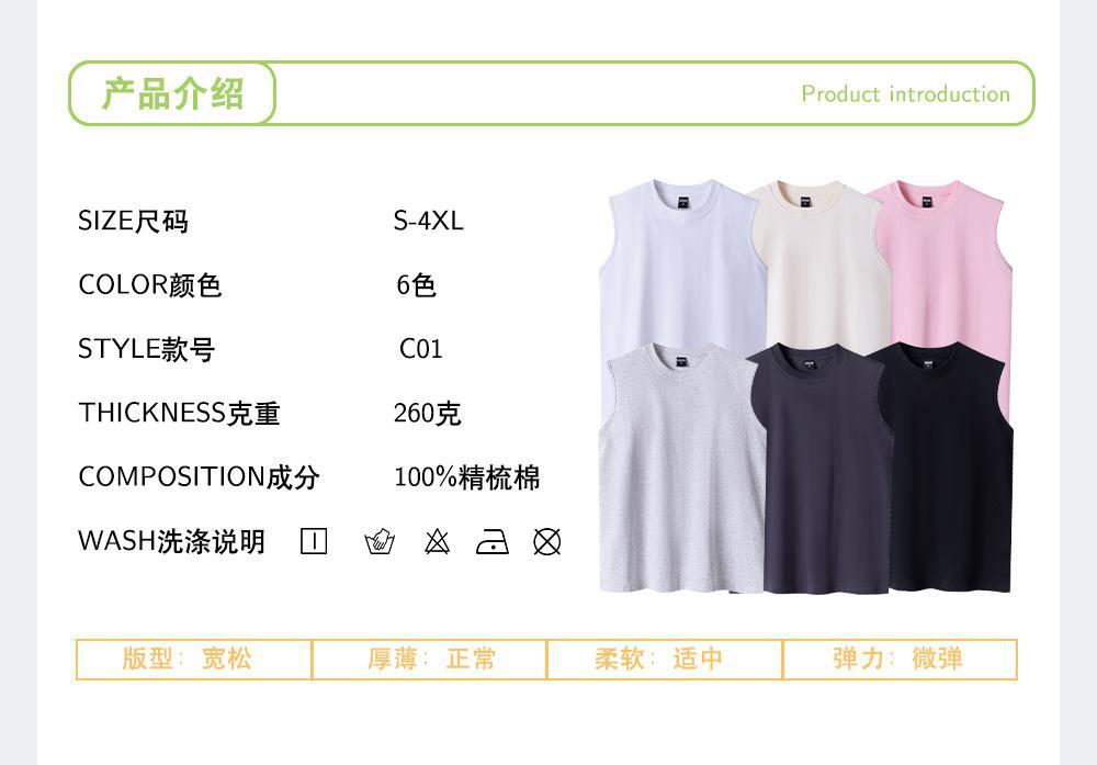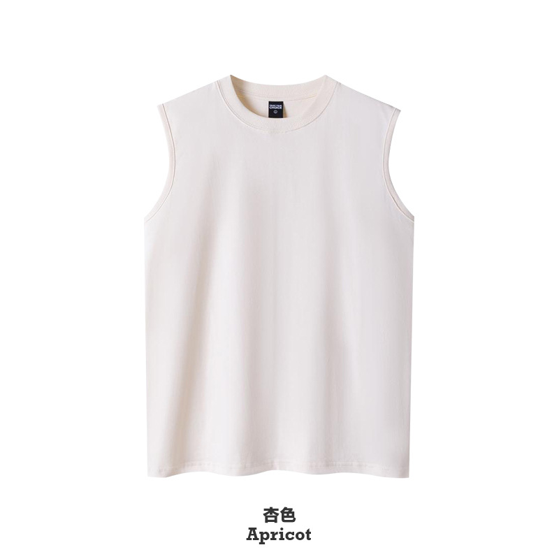 260G 더블 원사 빗 코튼 남성용 조끼 루즈 캐주얼 셔츠 솔리드 컬러 기본 느슨한 민소매 조끼스토어 가기
