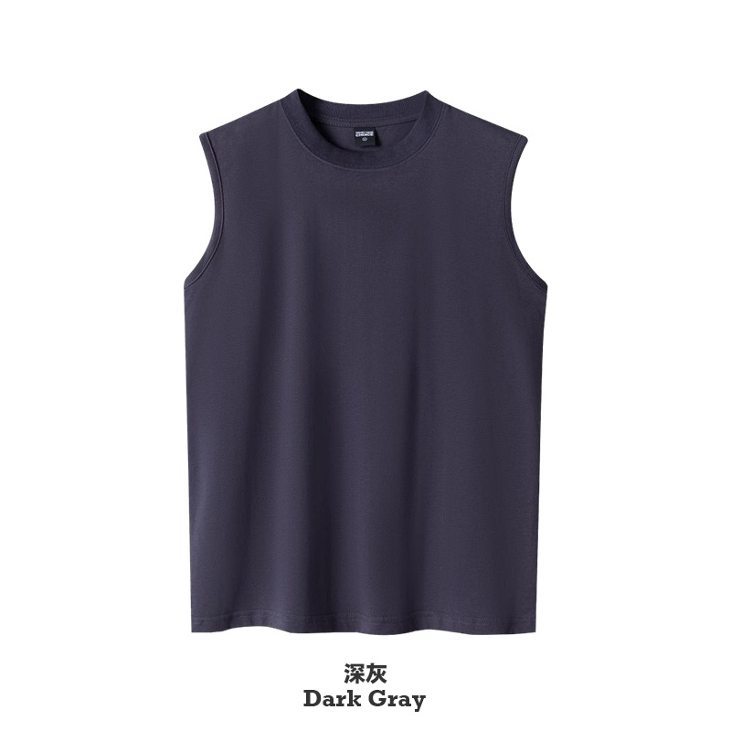 260G 더블 원사 빗 코튼 남성용 조끼 루즈 캐주얼 셔츠 솔리드 컬러 기본 느슨한 민소매 조끼