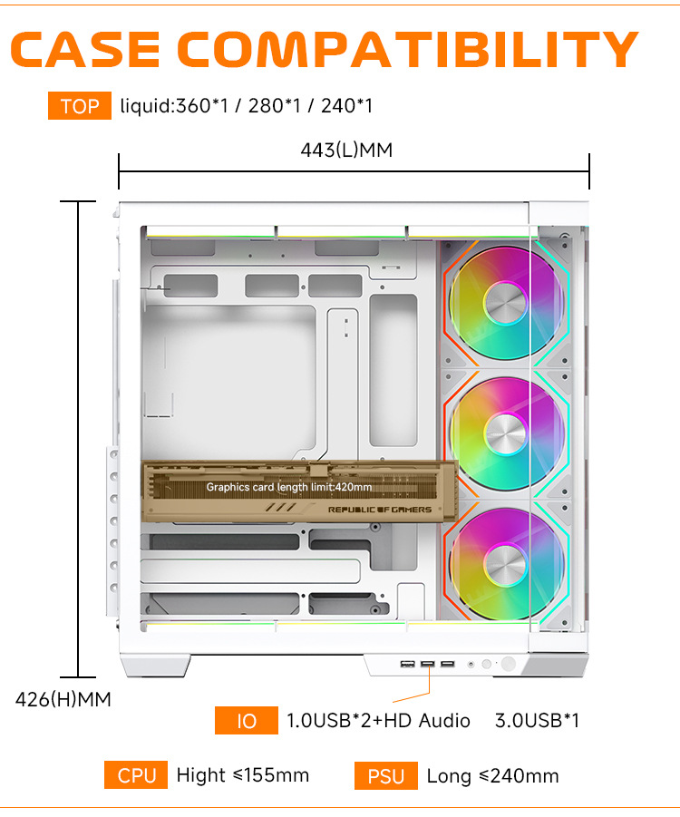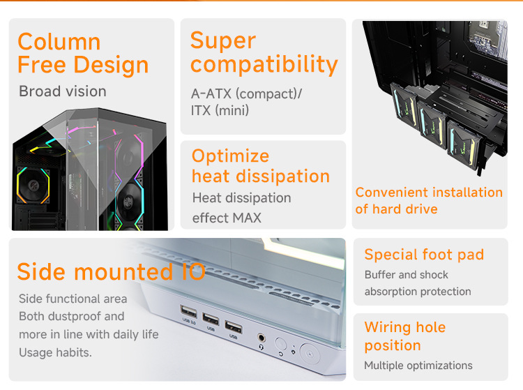 Jungle Leopard AS-01 섀시 ATX 강화 유리 측면 투명 지원 360 수냉식 e-스포츠 바다 전망 룸 섀시스토어 가기