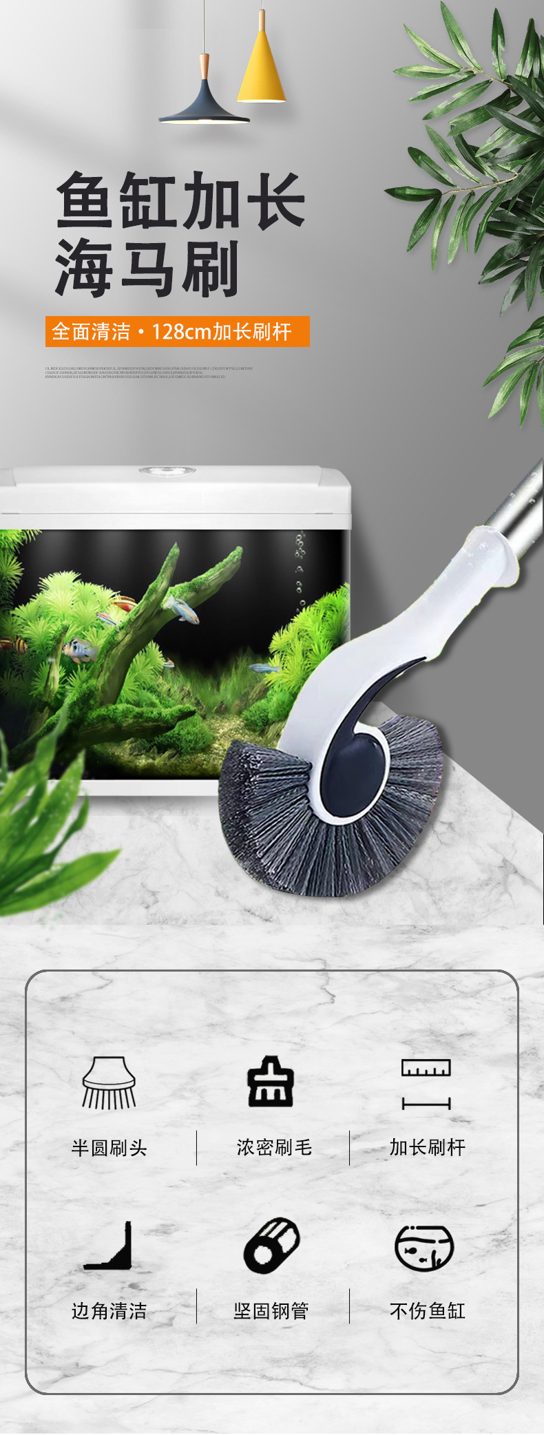 수조 내벽 해마 브러시, 수조 긴 막대 브러시, 조가비 브러시, 청소 브러시, 유리 브러시, 사각지대 없는 청소 및 수세미 브러시