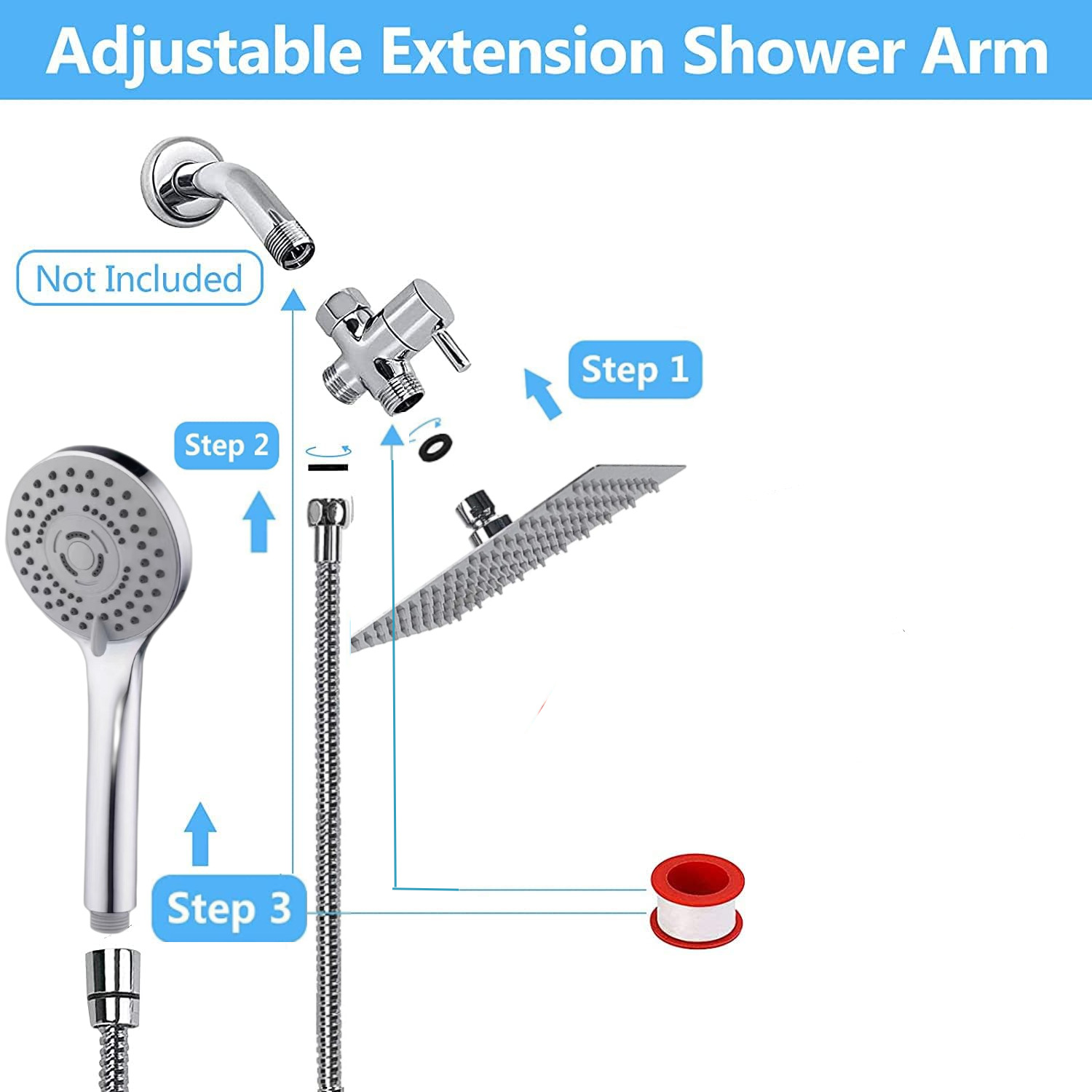 미국식 확장 막대 없는 표면 장착형 샤워 분배기 벽걸이형 샤워 풀 세트 스테인레스 스틸 샤워 헤드 탑 스프레이스토어 가기