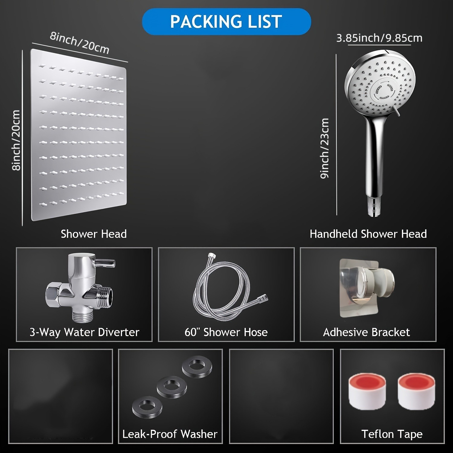 미국식 확장 막대 없는 표면 장착형 샤워 분배기 벽걸이형 샤워 풀 세트 스테인레스 스틸 샤워 헤드 탑 스프레이