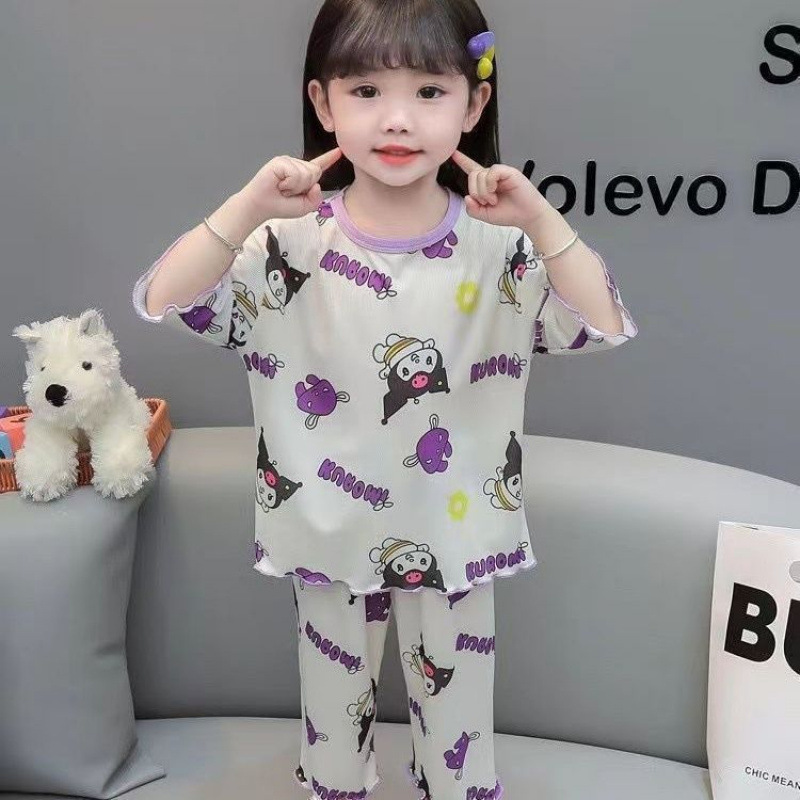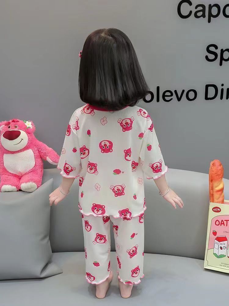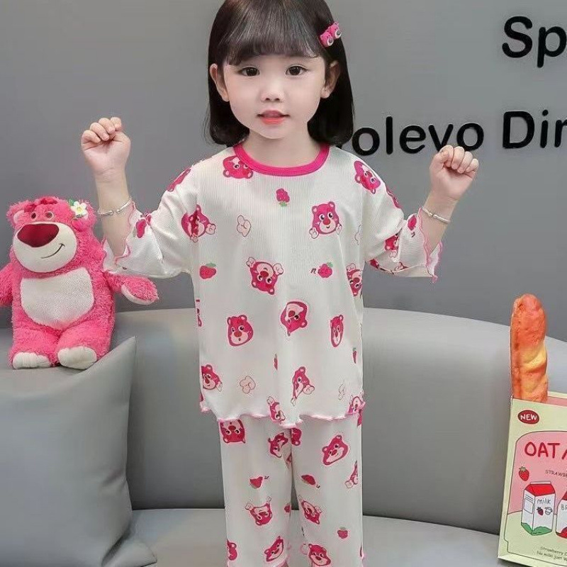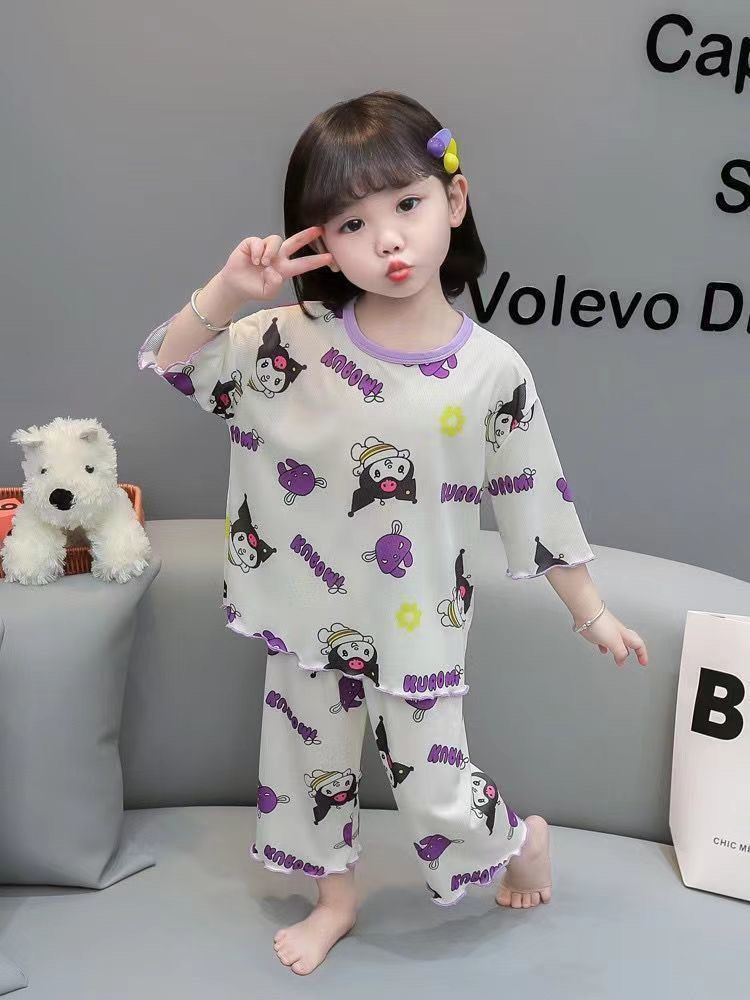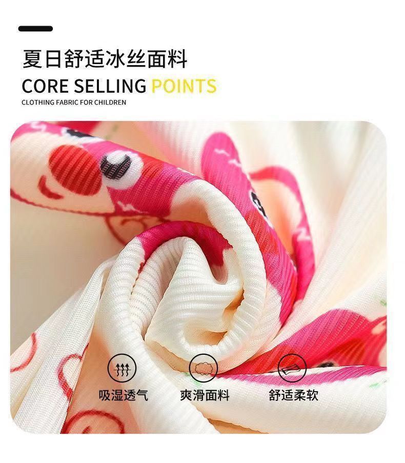 여름 얇은 얼음 실크 양복 아기 잠옷, 세련된 소녀 여름 투피스 세트, 가정복, 어린이 에어컨 옷, 여성스토어 가기