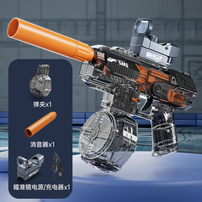 • 투명 블랙-UZI 전기 물총 [등받이 없음] 불을 뿜는 라이트 버전