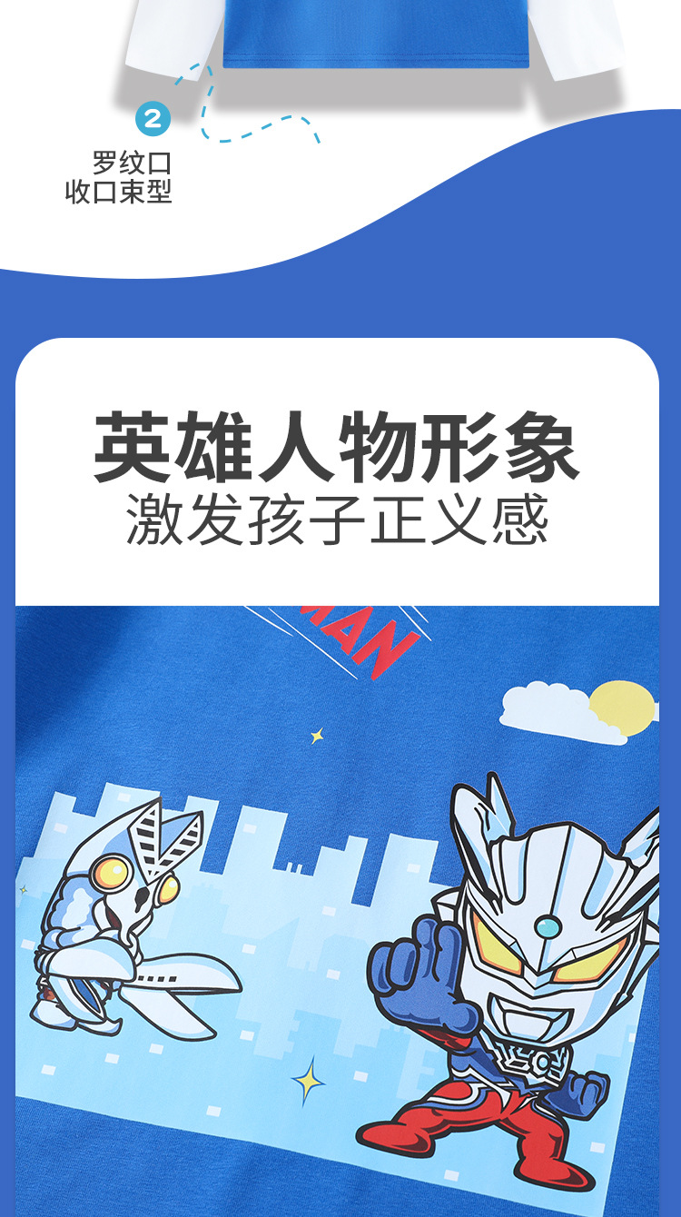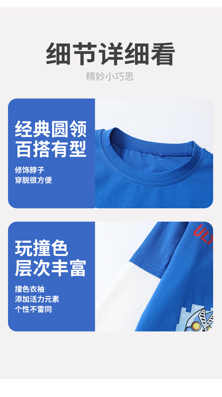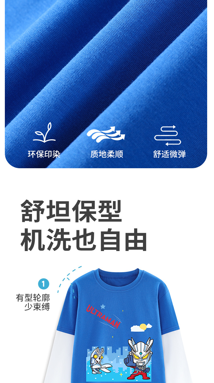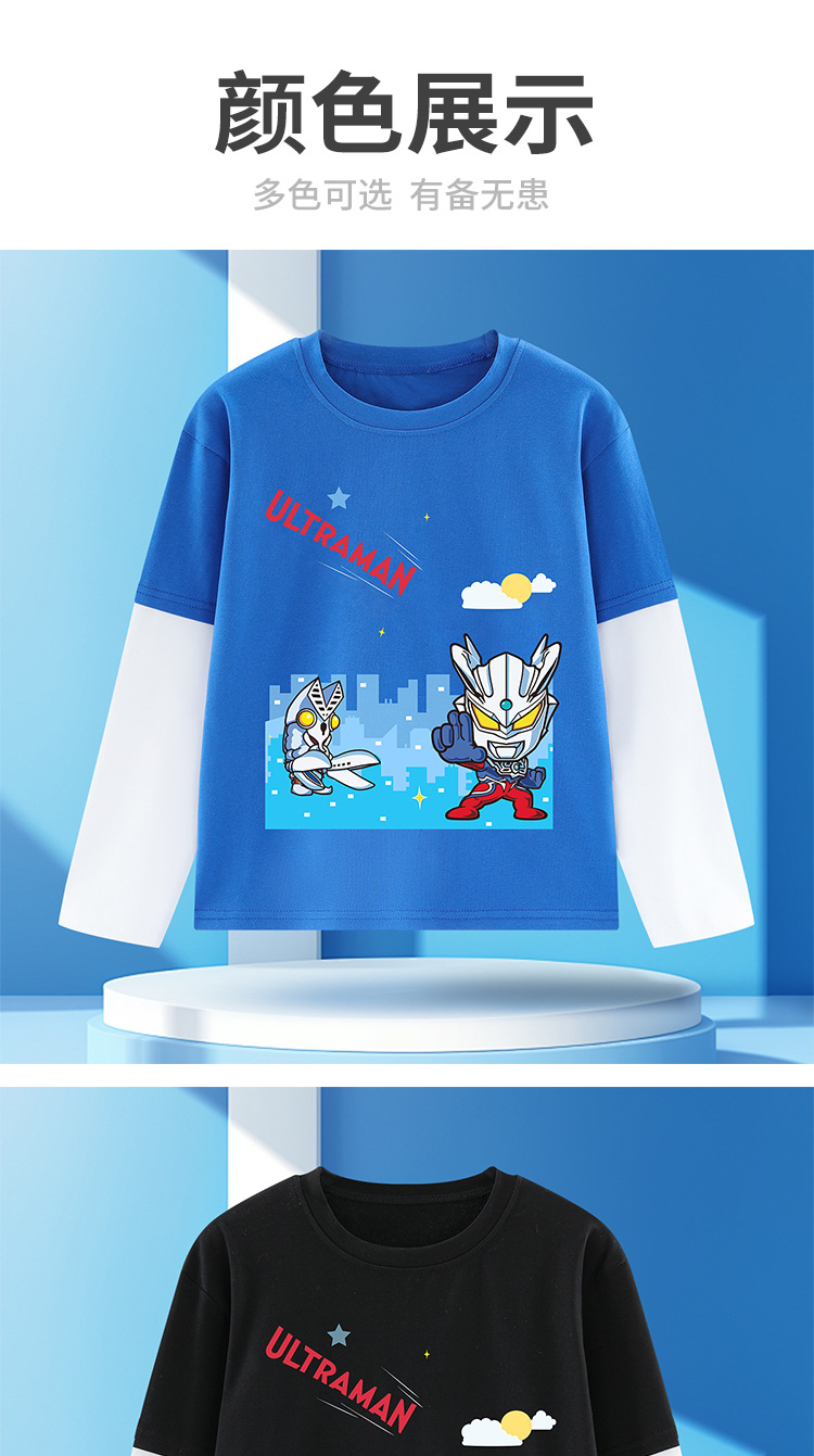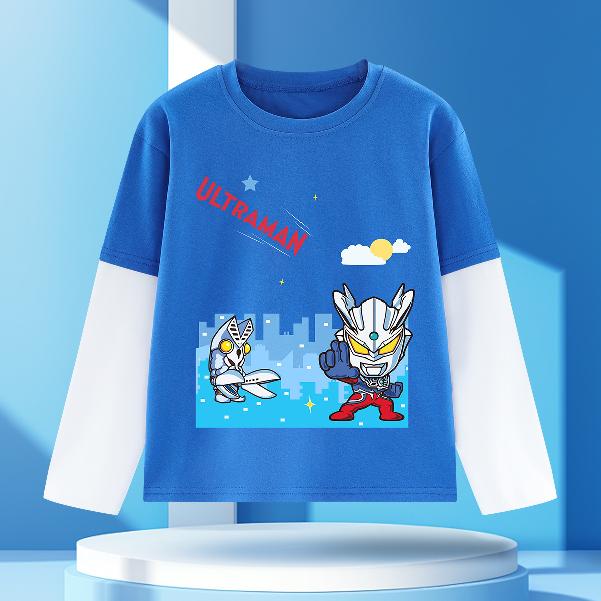 Sero Monster Combination 소년 순수 코튼 봄, 가을 티셔츠 긴 소매 어린이 만화 프린트 라운드 넥 컬러 블록 코튼 탑