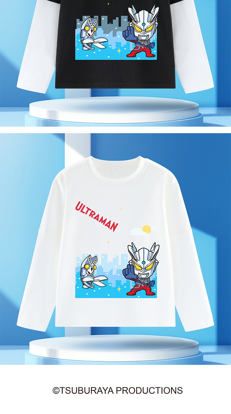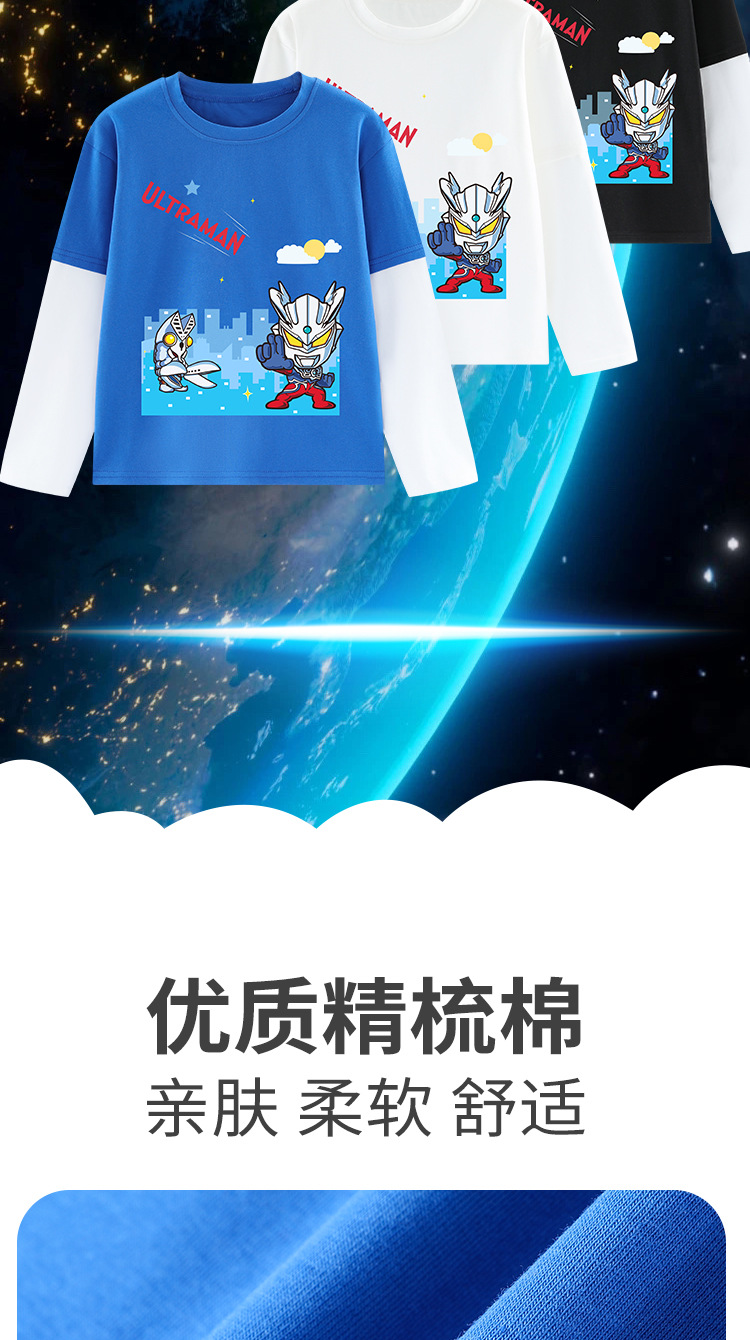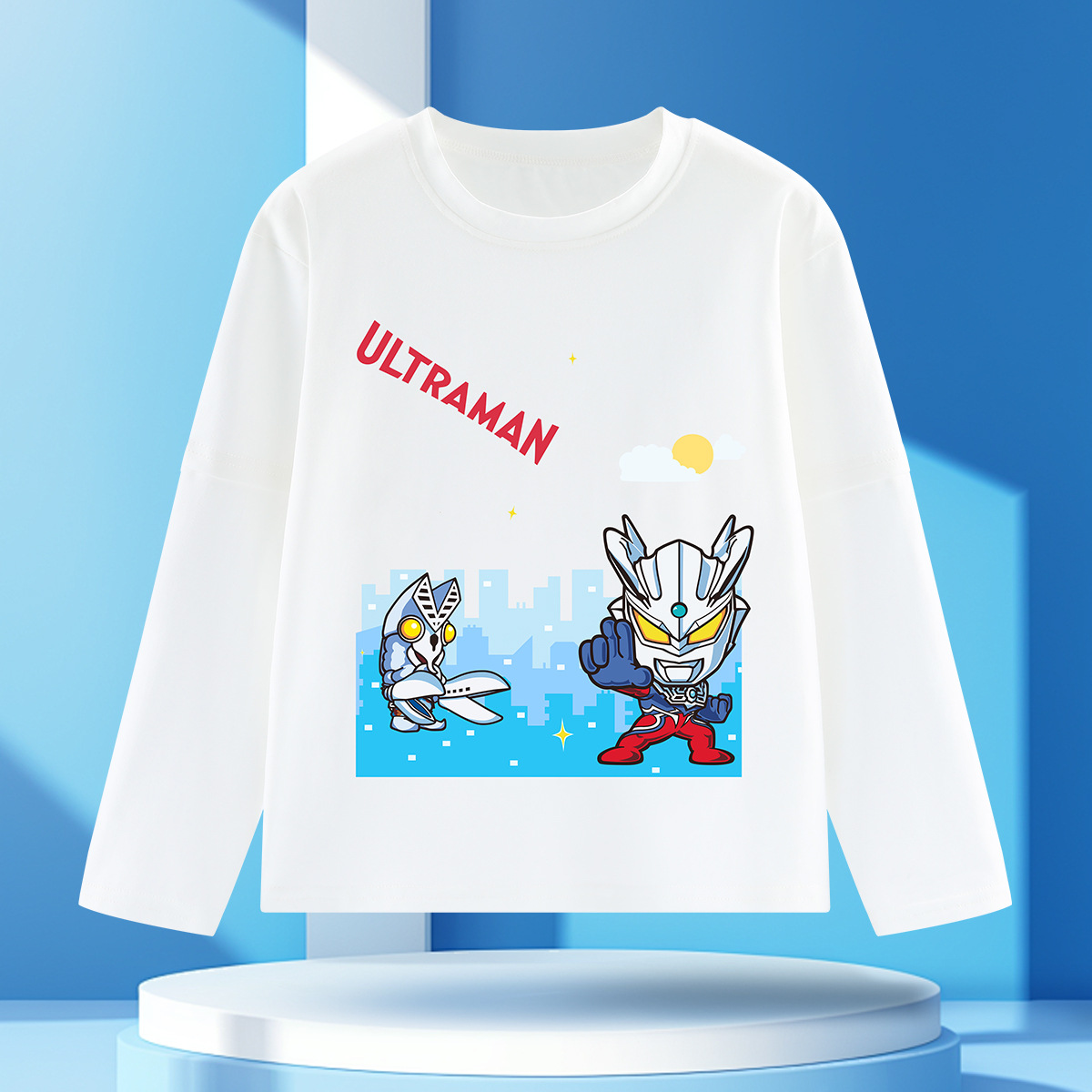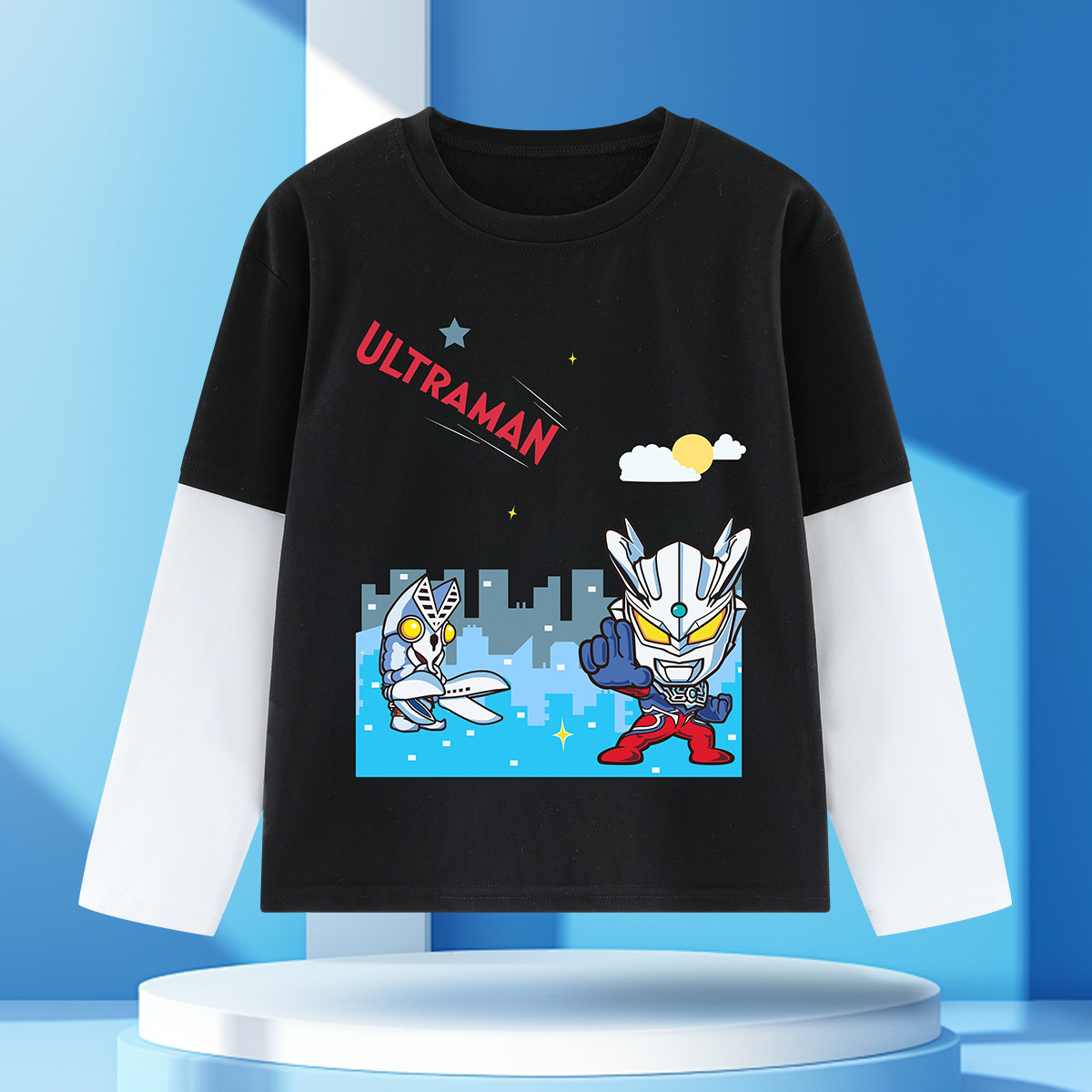 Sero Monster Combination 소년 순수 코튼 봄, 가을 티셔츠 긴 소매 어린이 만화 프린트 라운드 넥 컬러 블록 코튼 탑스토어 가기