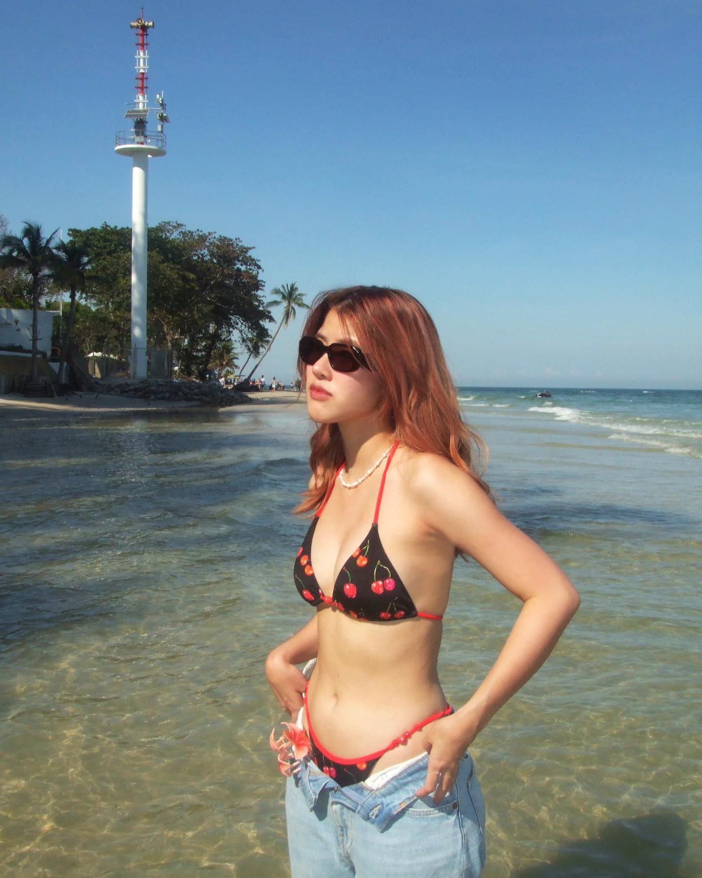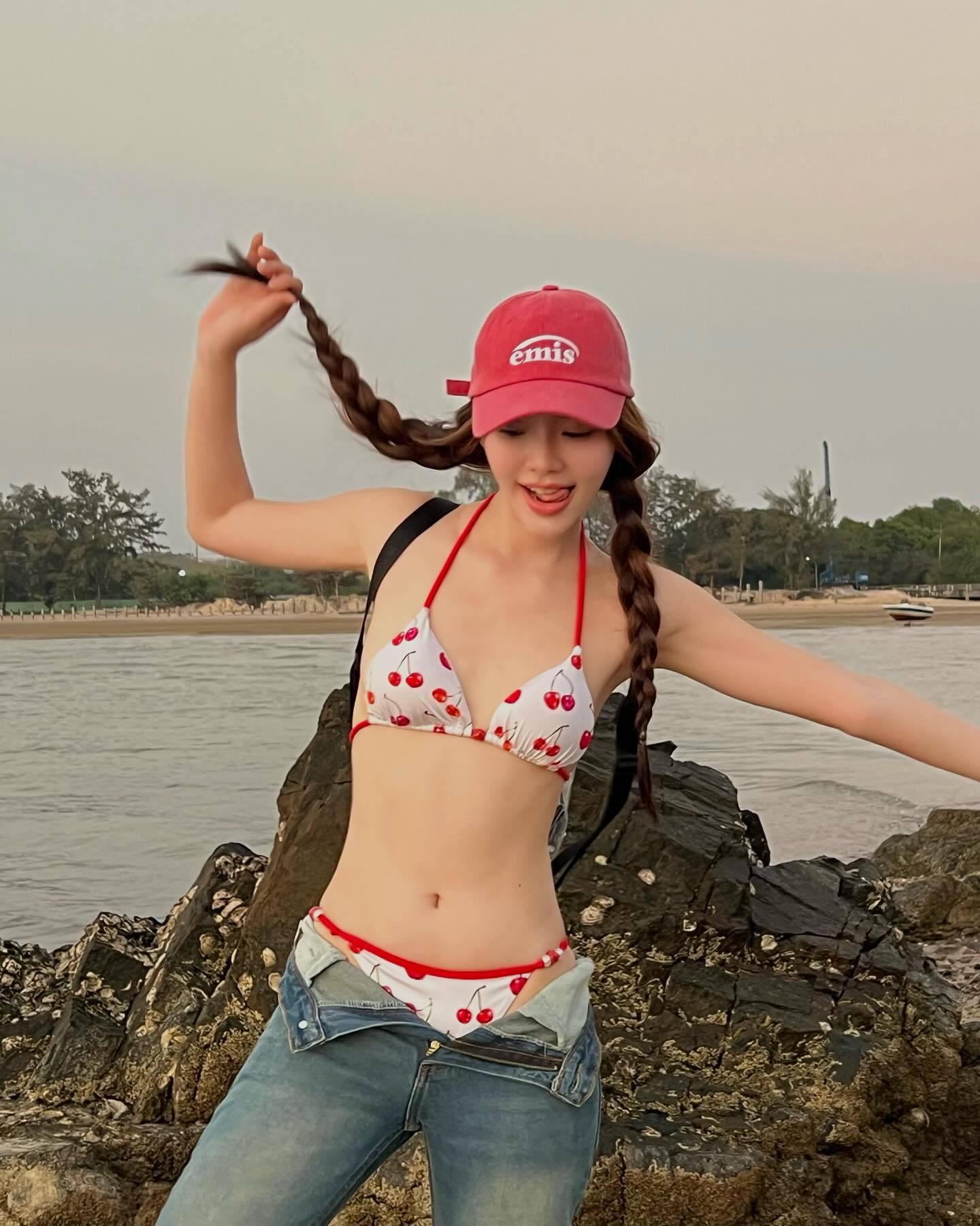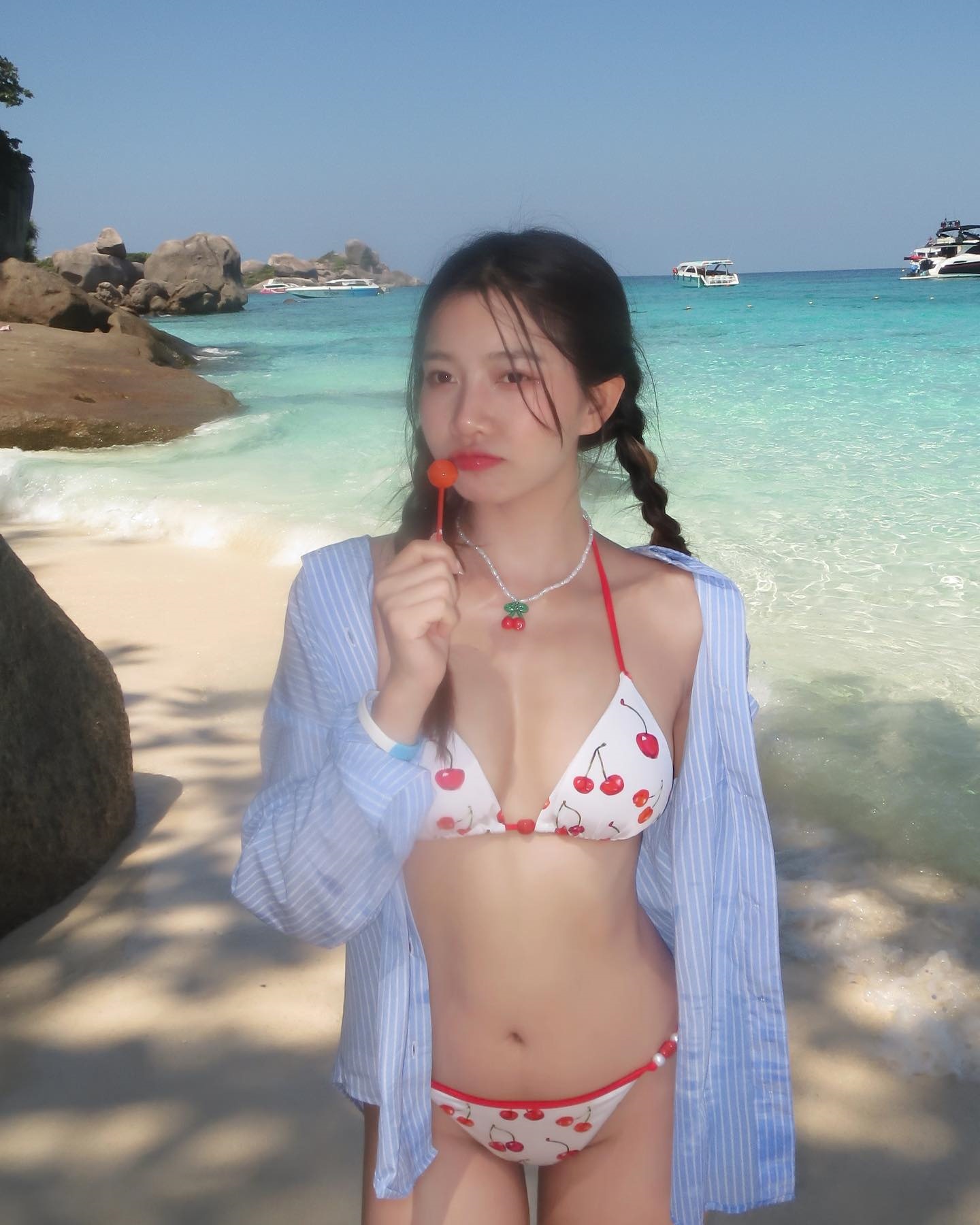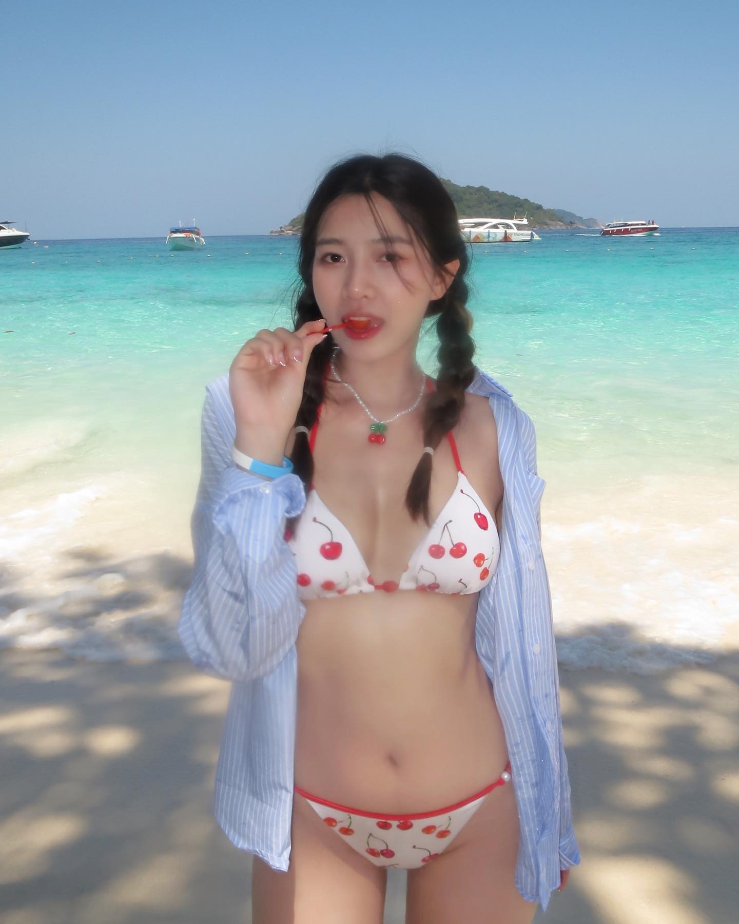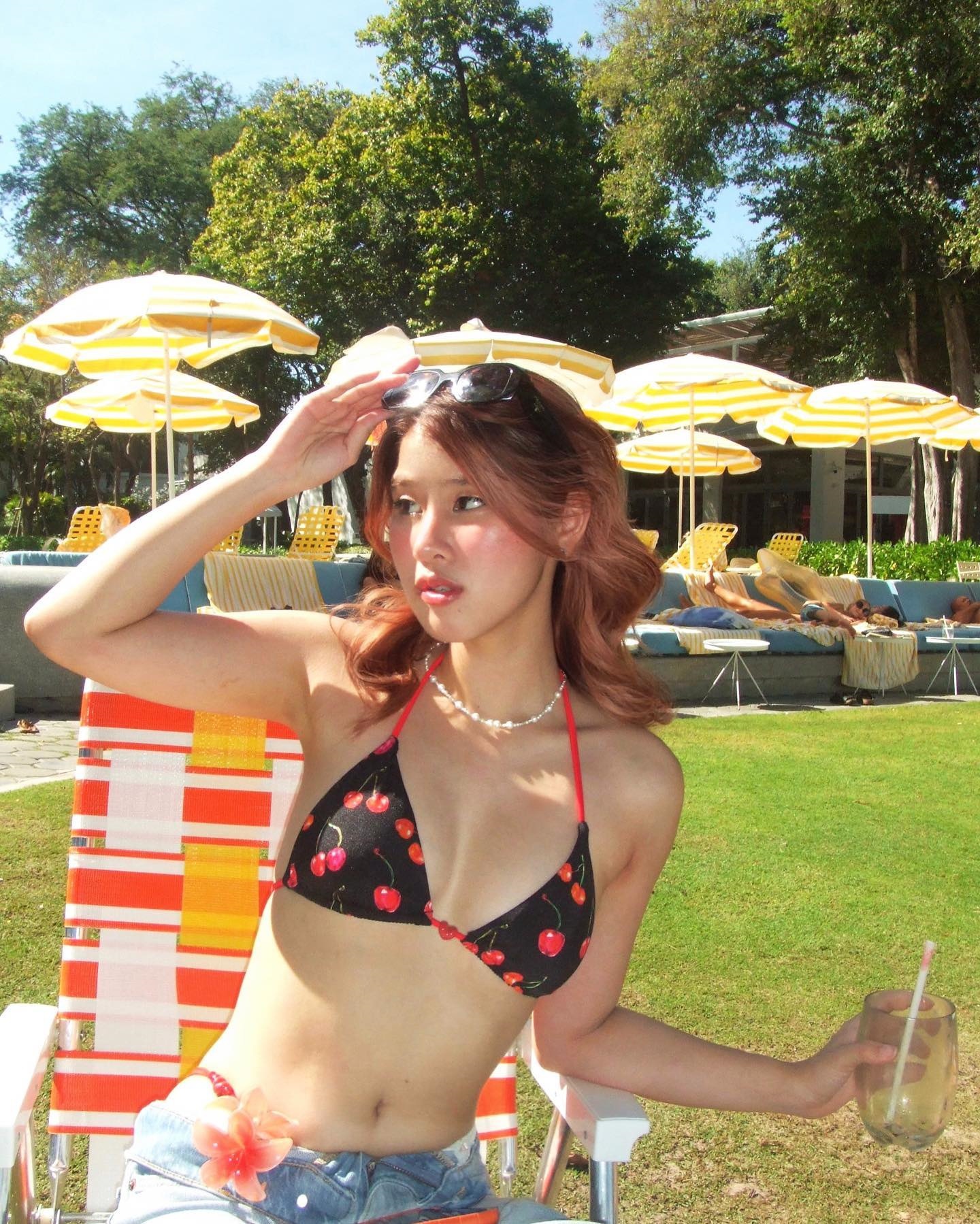 Ins 스타일 섹시한 여신 순수한 욕망 스파이스 체리 3 점 테더 비키니 비키니 수영복 여성