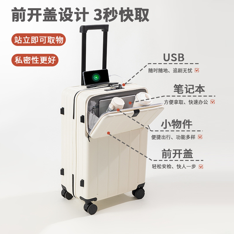 여행 가방 20inch 탑승 케이스 여성용 다기능 전면 개방형 가방 학생 두꺼운 내구성 암호 트롤리 케이스스토어 가기