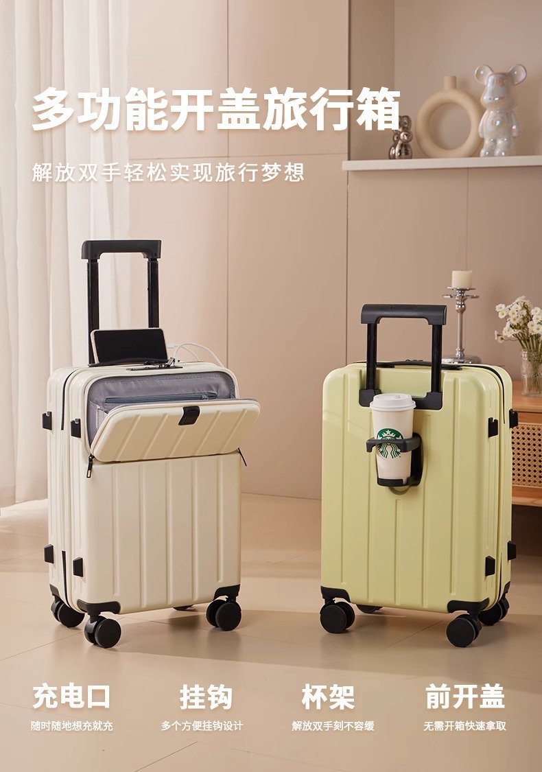 여행 가방 20inch 탑승 케이스 여성용 다기능 전면 개방형 가방 학생 두꺼운 내구성 암호 트롤리 케이스