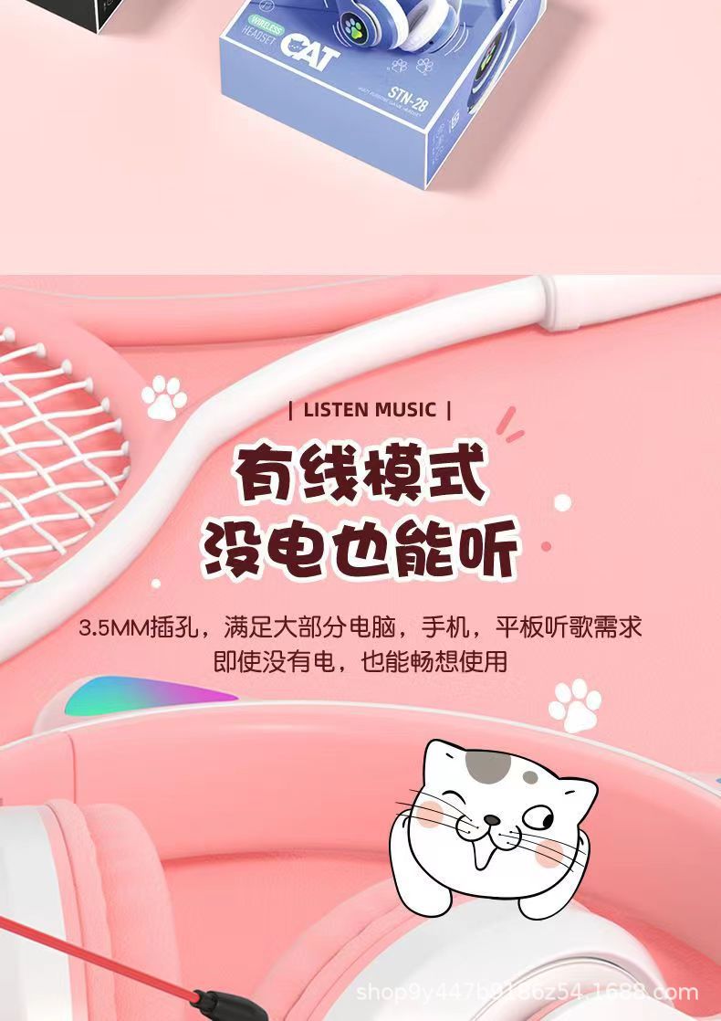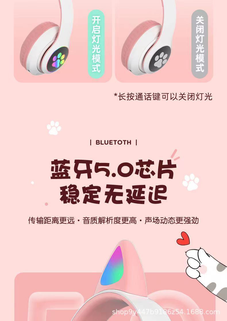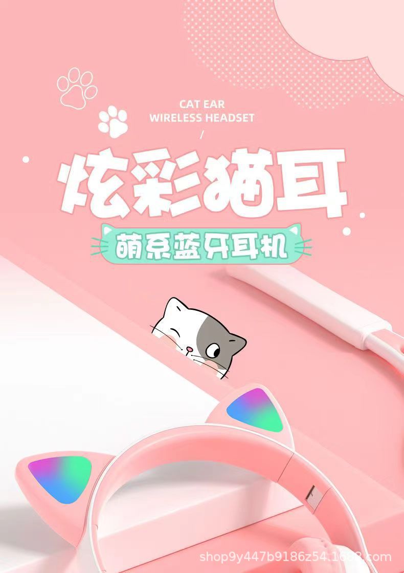 국경 간 새로운 고양이 귀 헤드셋 블루투스 헤드셋 스포츠 게임 전자 스포츠 블루투스 헤드셋 제조 업체 도매