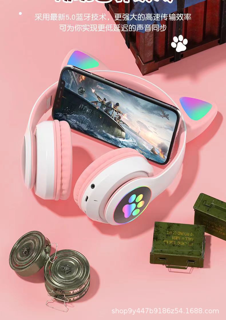 국경 간 새로운 고양이 귀 헤드셋 블루투스 헤드셋 스포츠 게임 전자 스포츠 블루투스 헤드셋 제조 업체 도매스토어 가기