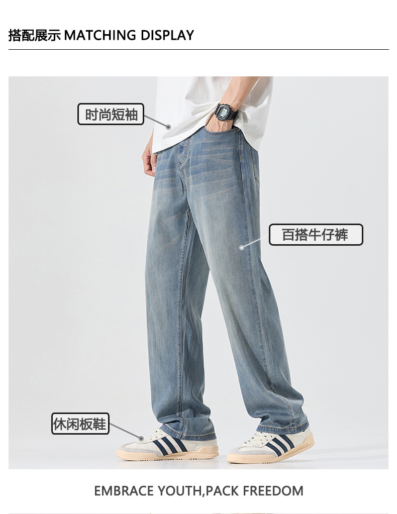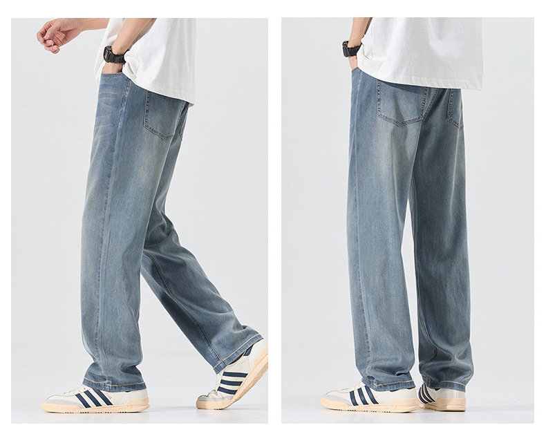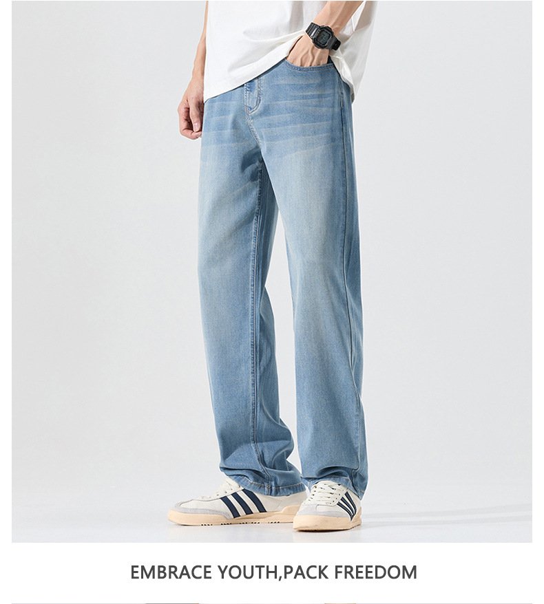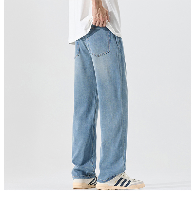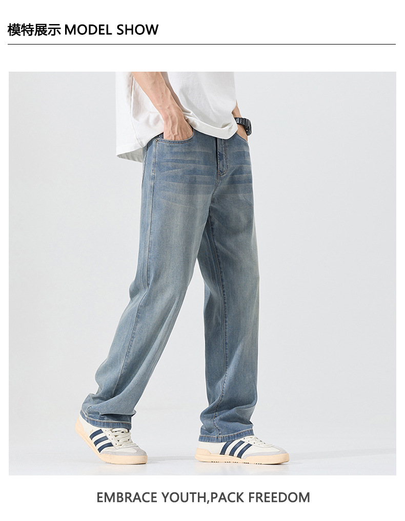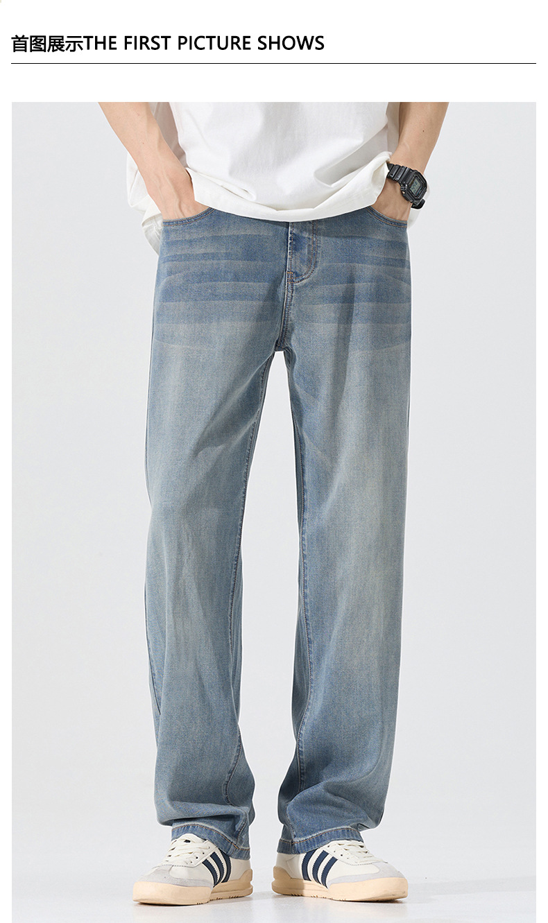 莱赛尔美式高街复古男士牛仔裤夏季天丝薄款垂感宽松直筒牛仔裤男