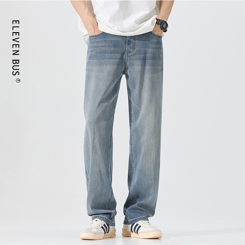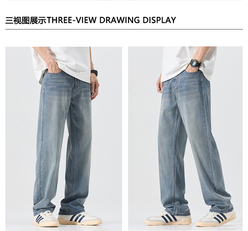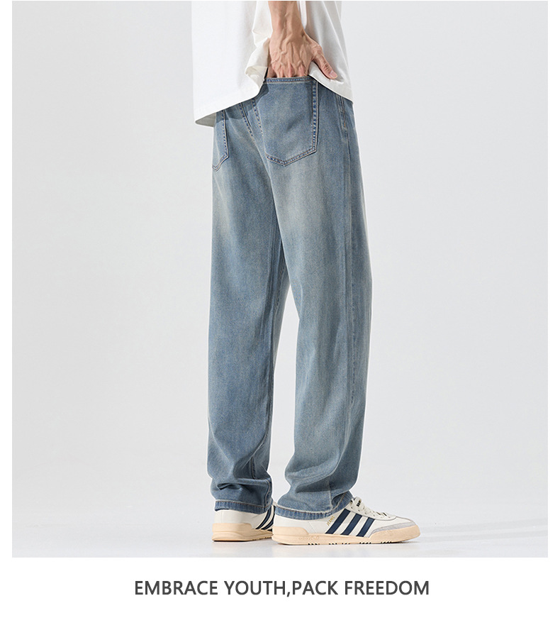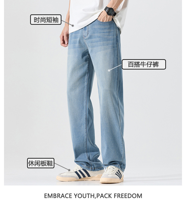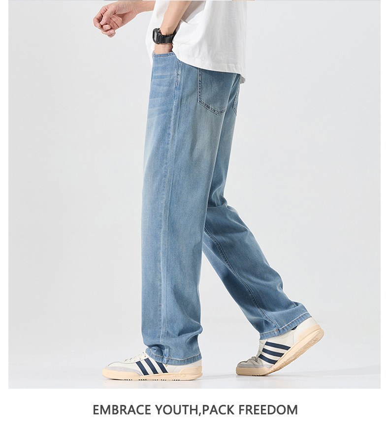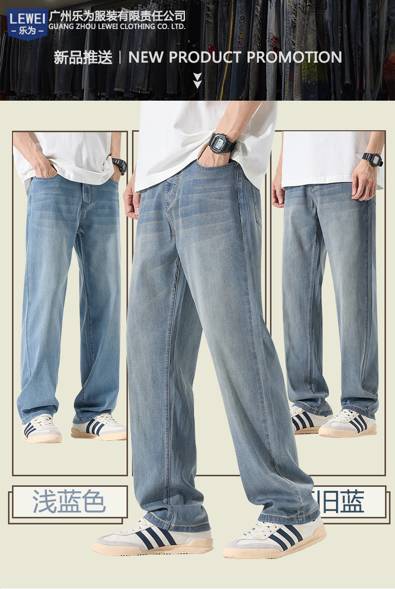 莱赛尔美式高街复古男士牛仔裤夏季天丝薄款垂感宽松直筒牛仔裤男