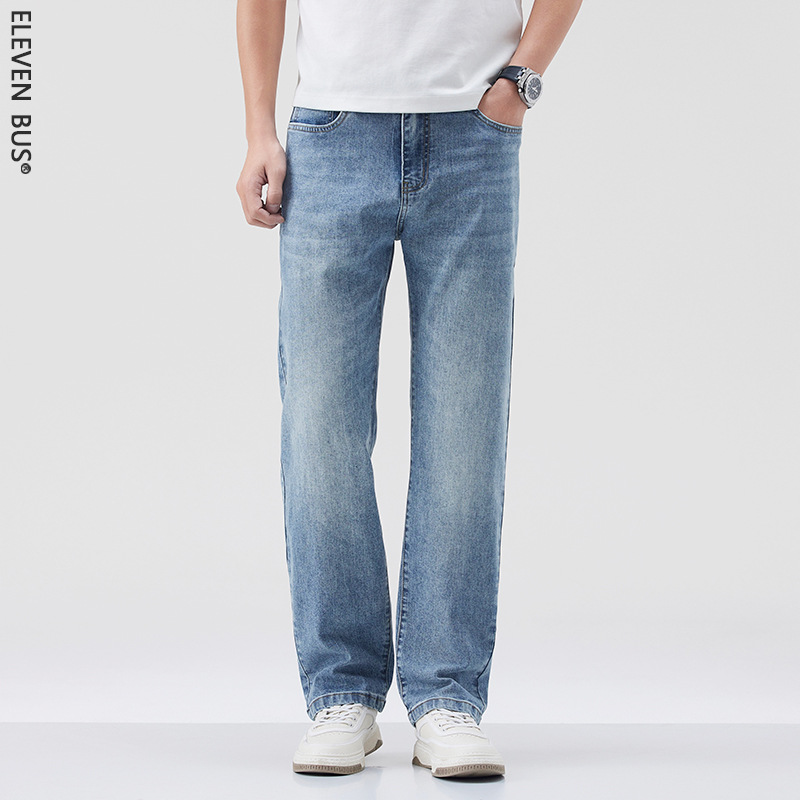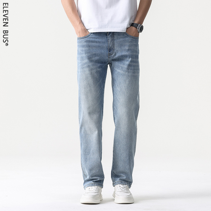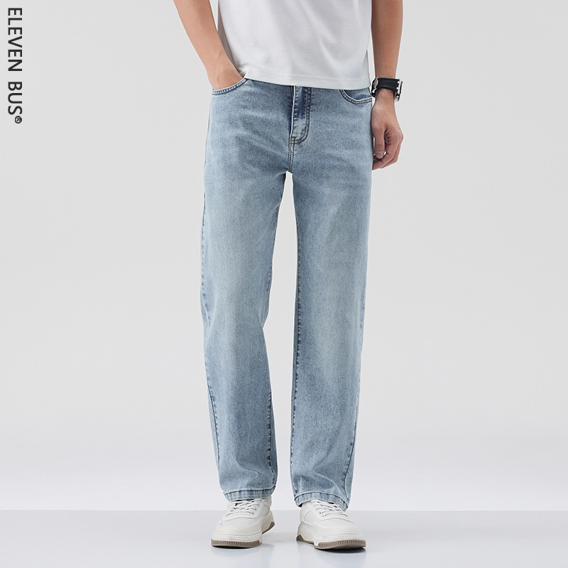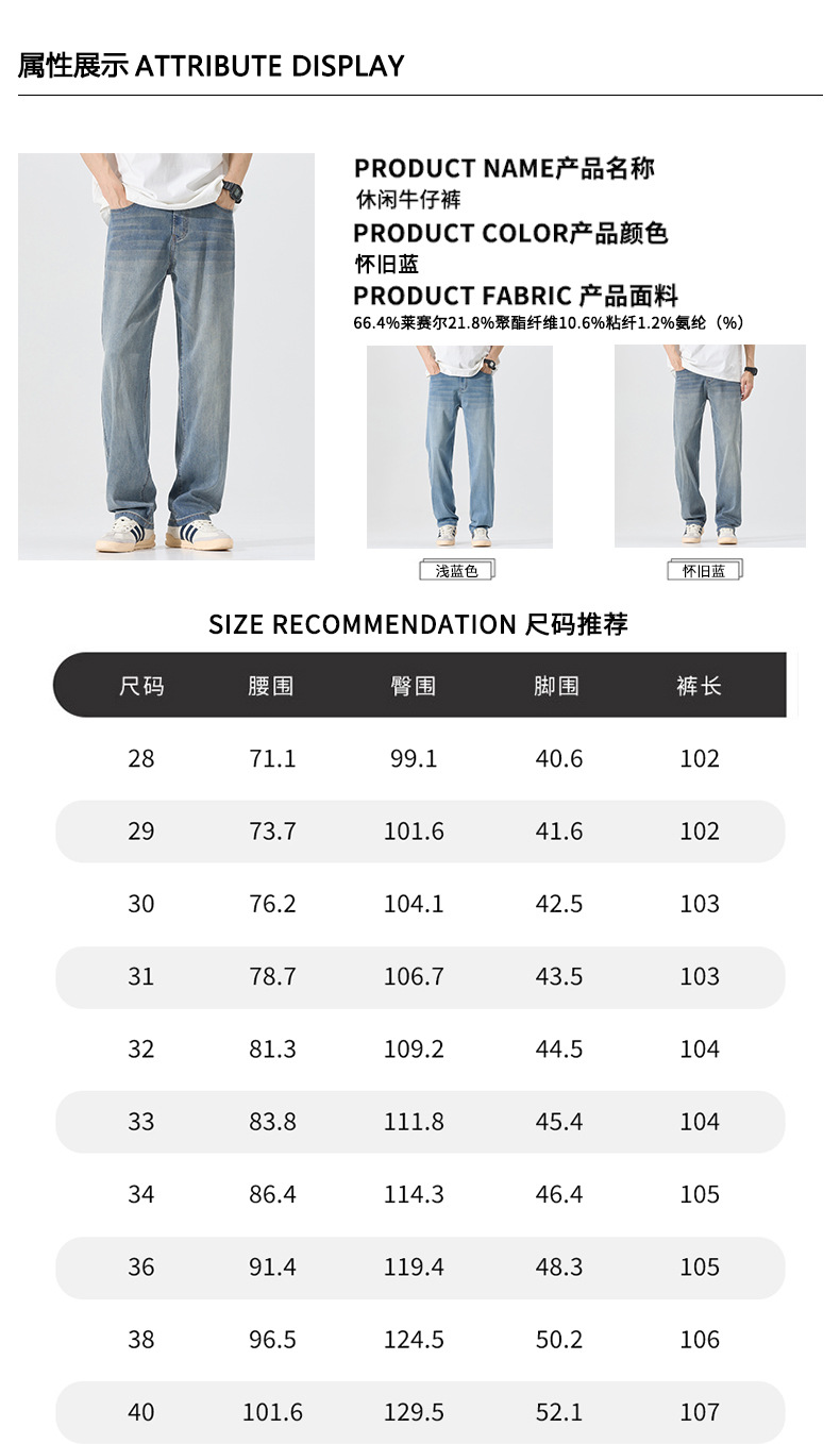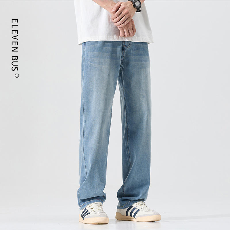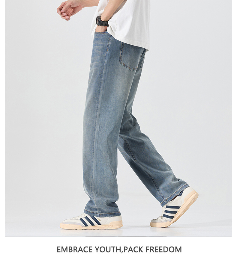 莱赛尔美式高街复古男士牛仔裤夏季天丝薄款垂感宽松直筒牛仔裤男