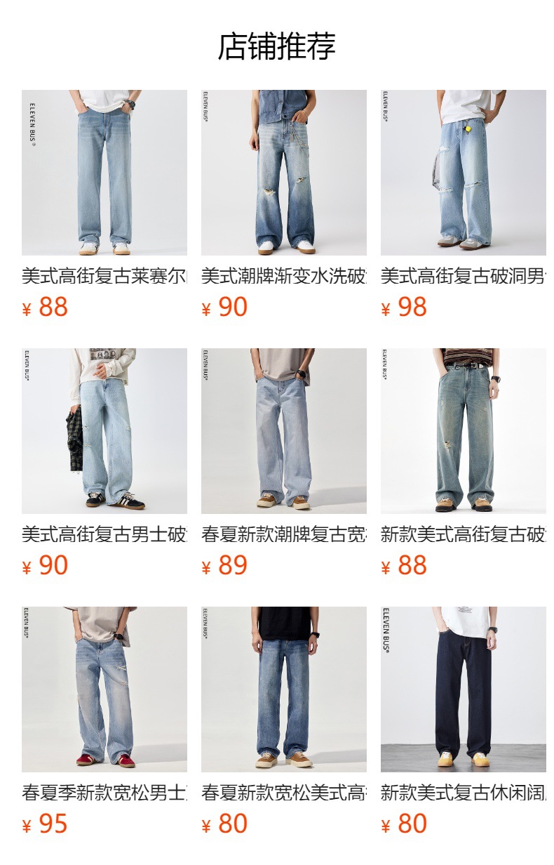 세일 아메리칸 하이스트리트 남성 및 여성 복고풍 멋진 남성 트렌디 캐주얼 다용도 청바지 여름 텐셀 얇은 스타일스토어 가기
