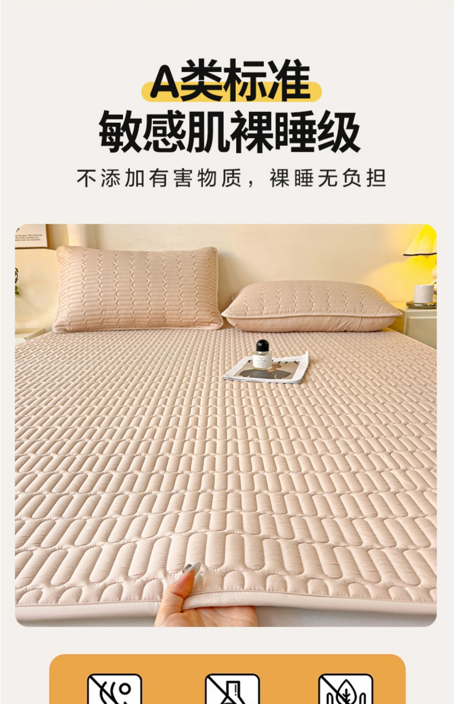 • 특대형 더블 침대: 200x200cm 매트리스 [피부 친화적, 알몸으로 자고 세탁기 사용 가능]