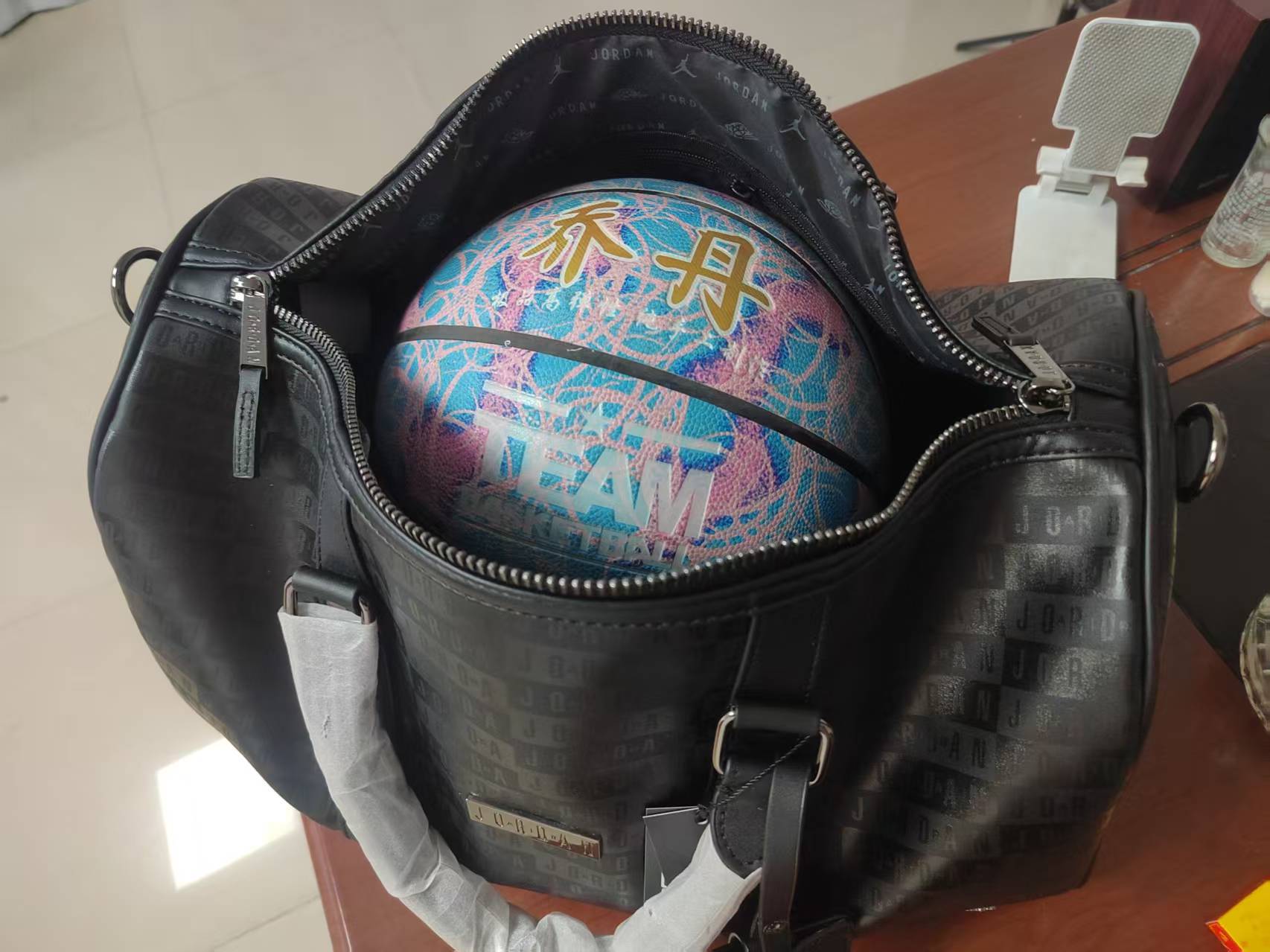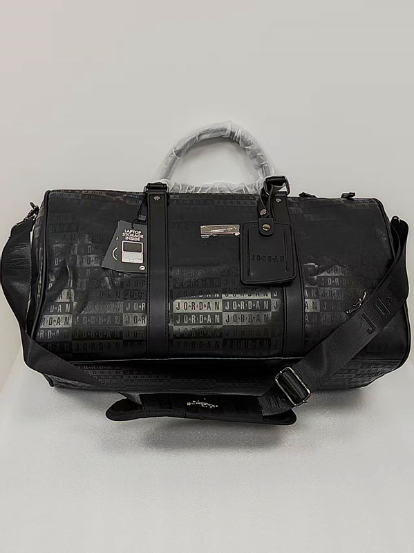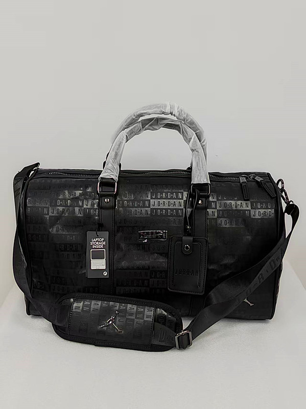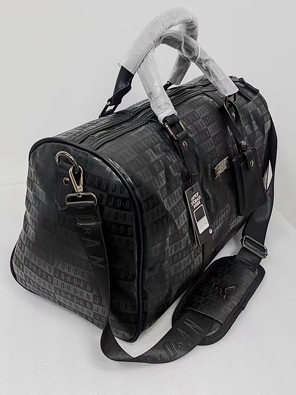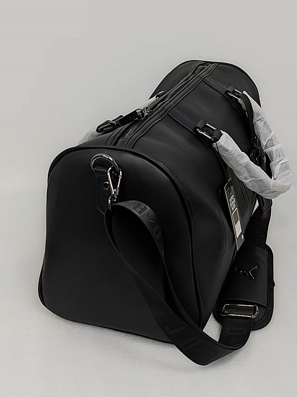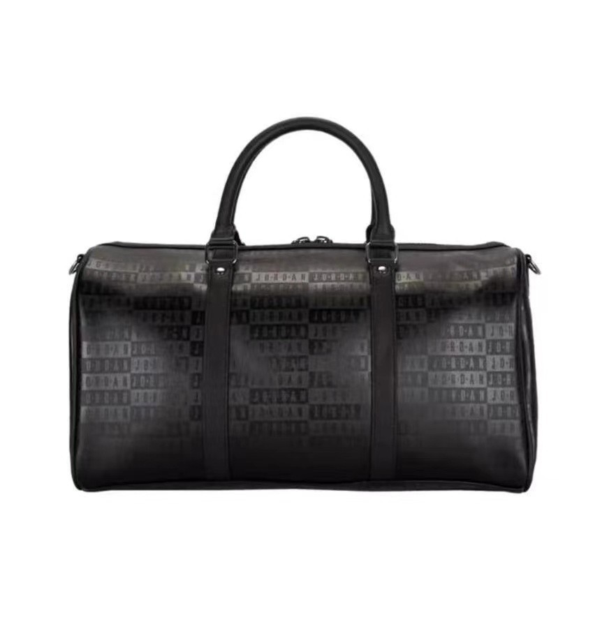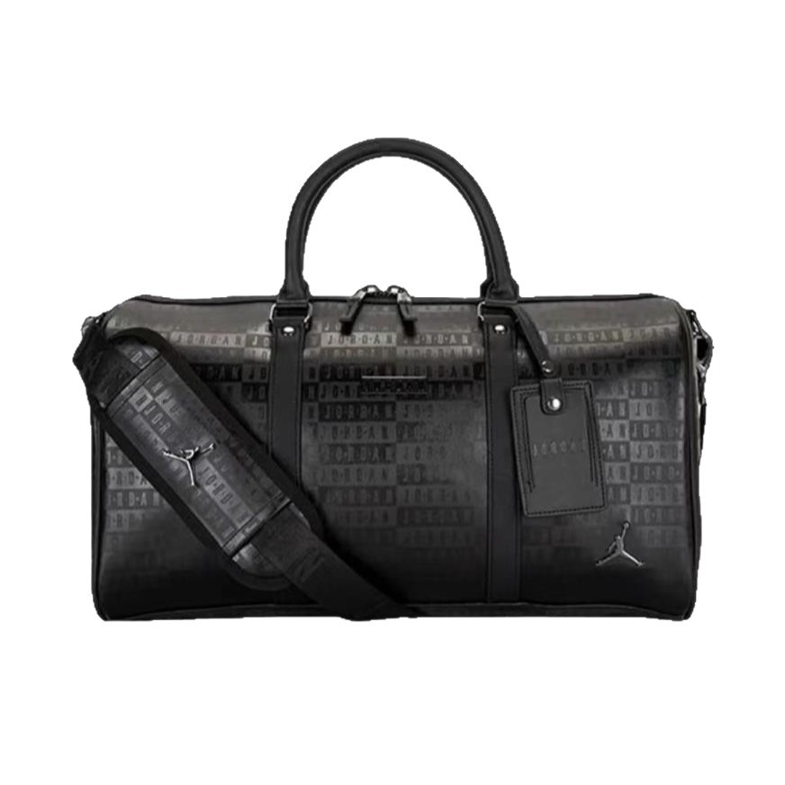 压字和满印AJ黑色PU旅行包篮球包健身包,黑色配枪色标五金,大容量设计,适合旅行健身通勤。