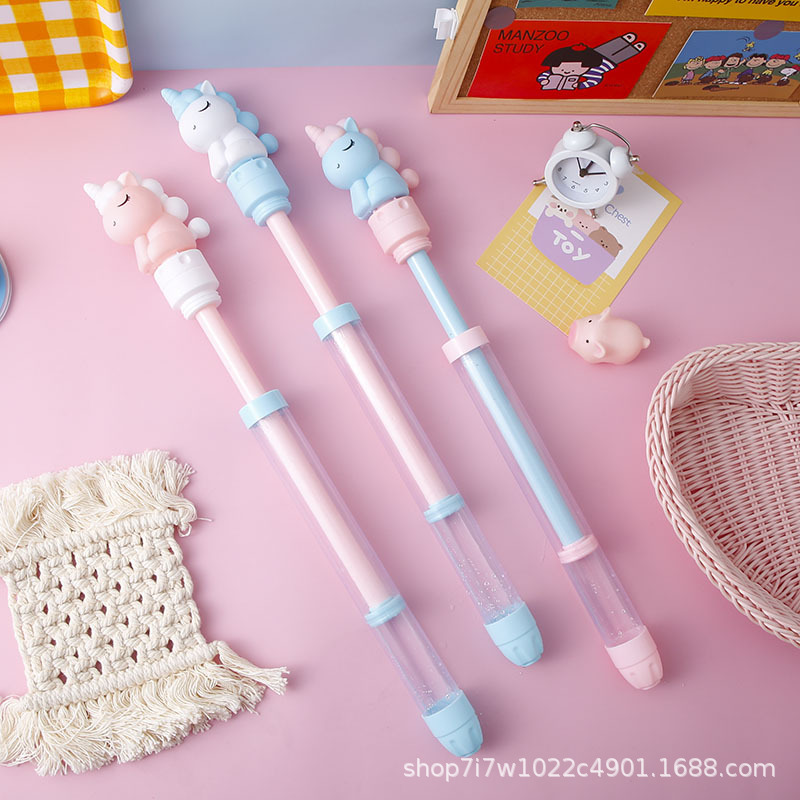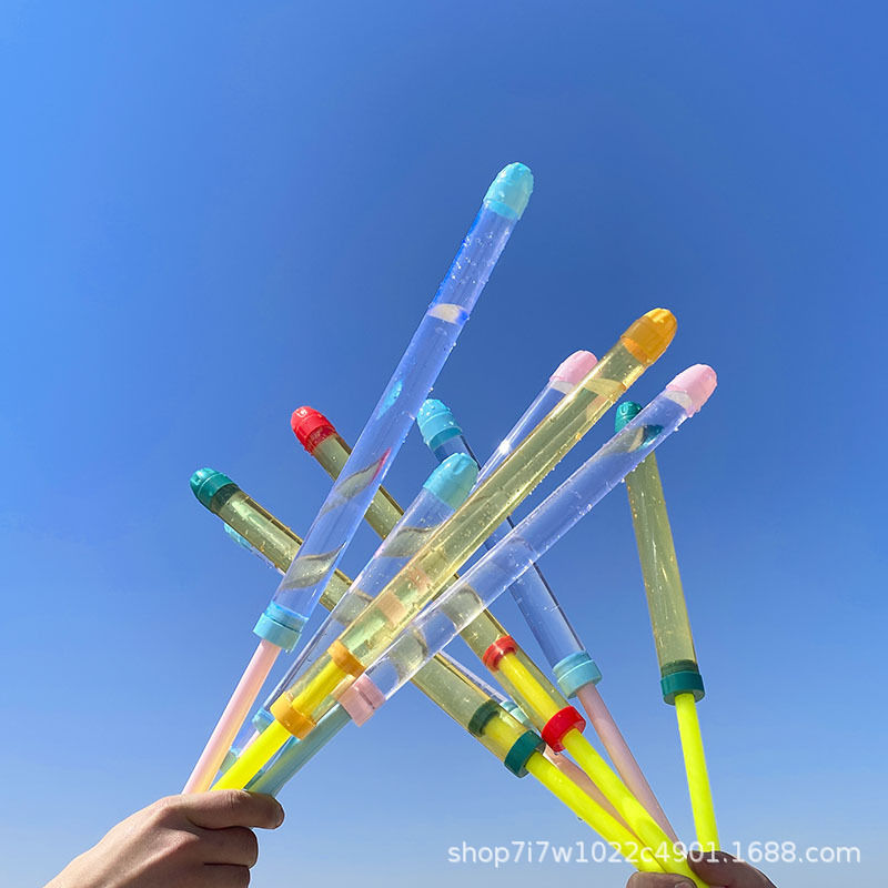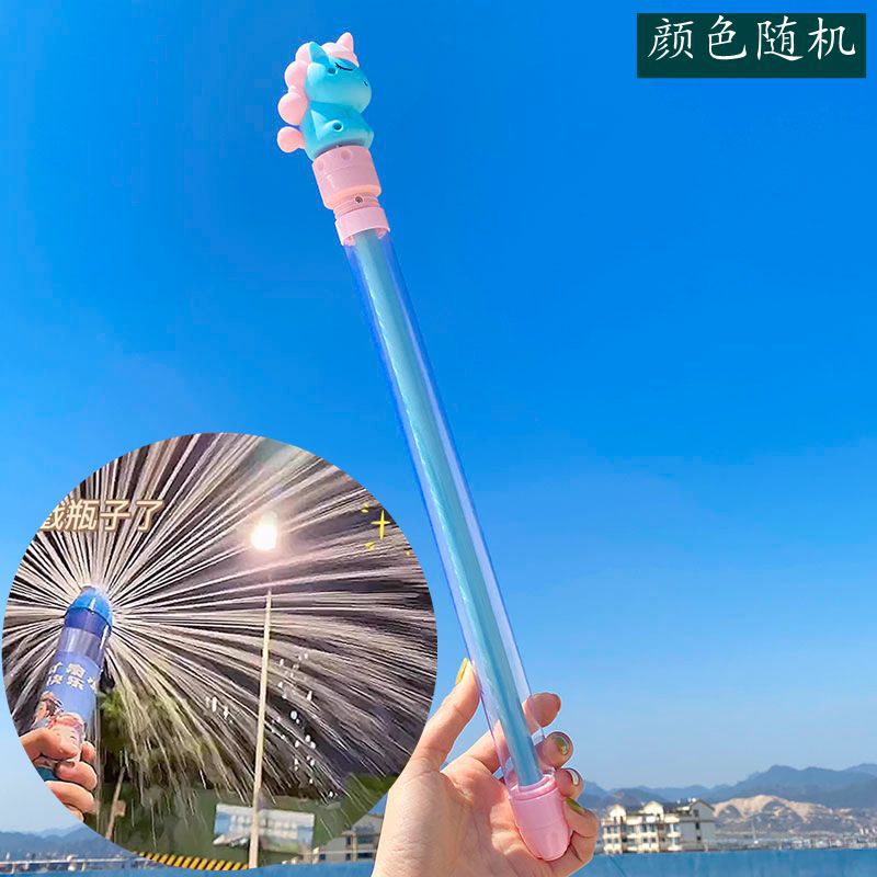 가로등 아래에서 불꽃 놀이 물총 애호가와 함께 소리를 흔들어 물 불꽃 놀이 분위기 낭만적 인 소품 어린이 레저 장난감 사진을 찍습니다.스토어 가기