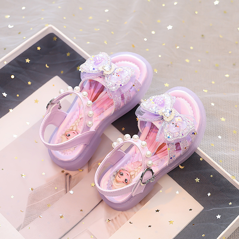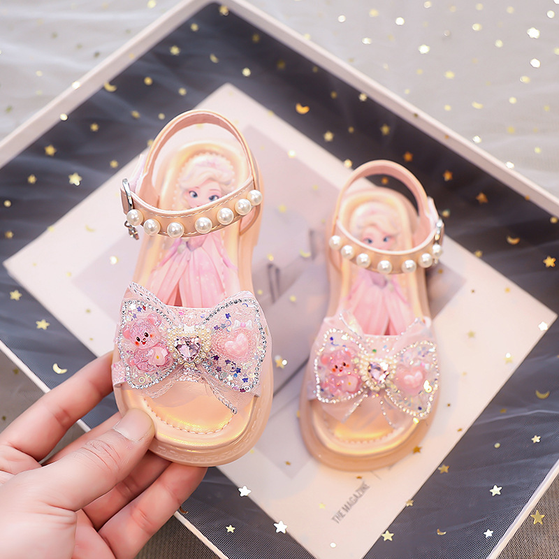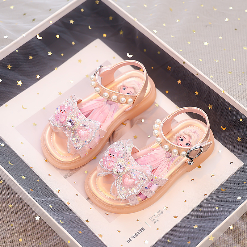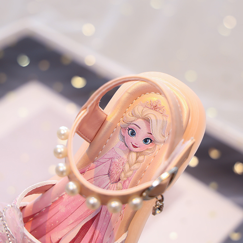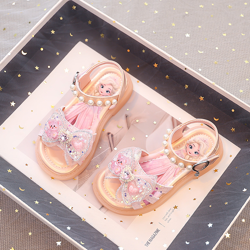 여자 샌들 새로운 만화 소녀 크리스탈 샌들 부드러운 단독 어린이 신발 3-8 년 된 해변 신발 귀여운 공주 신발