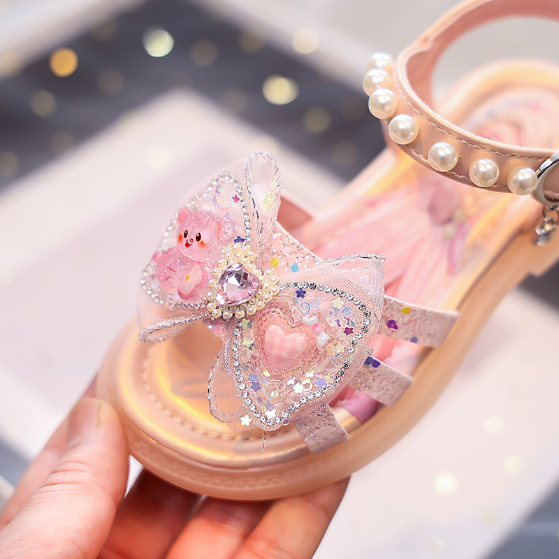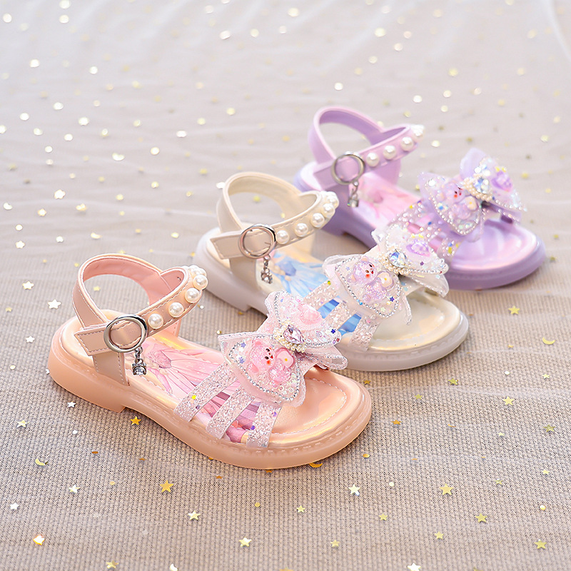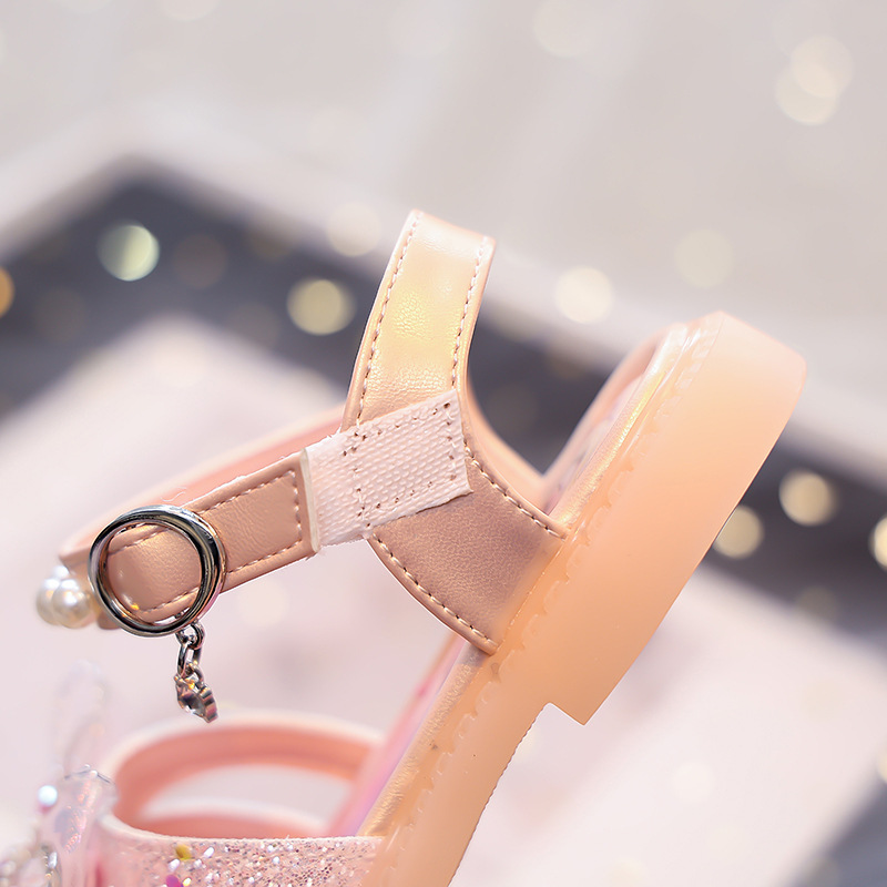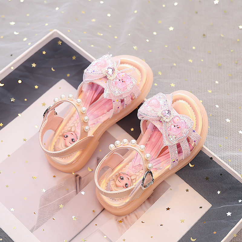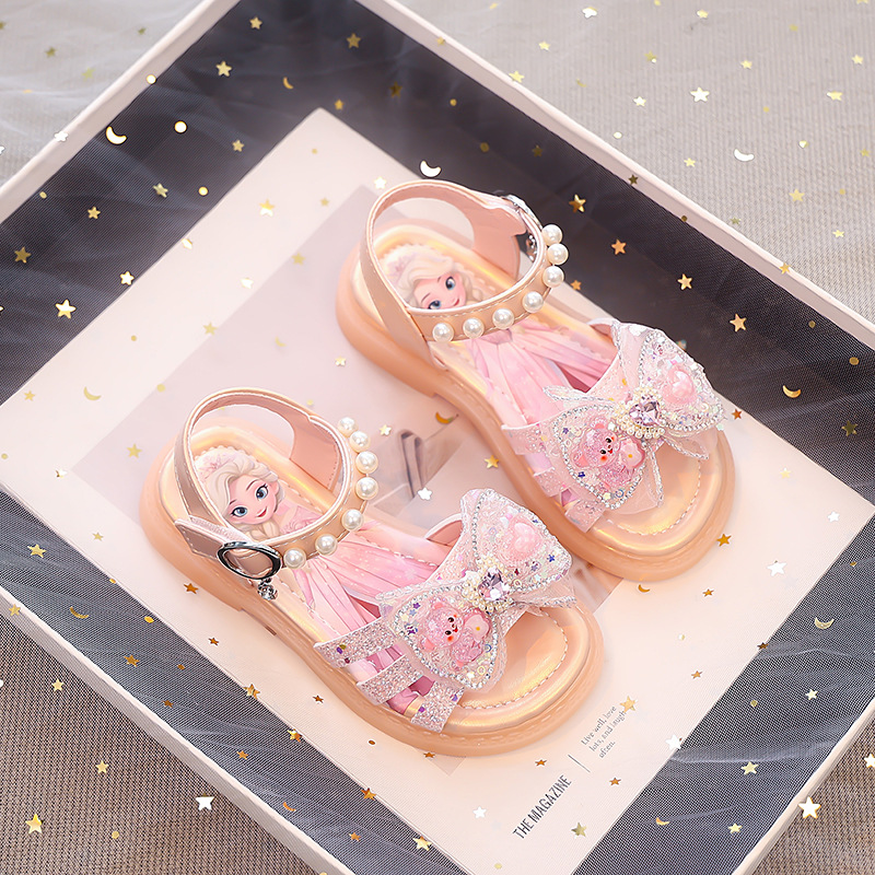 여자 샌들 새로운 만화 소녀 크리스탈 샌들 부드러운 단독 어린이 신발 3-8 년 된 해변 신발 귀여운 공주 신발