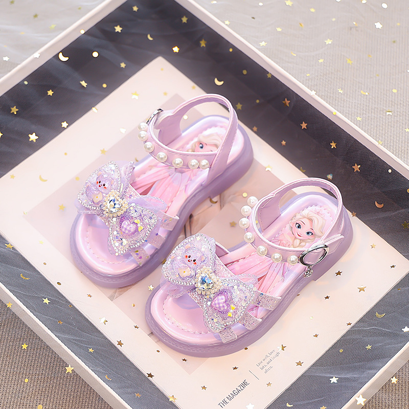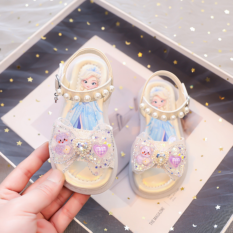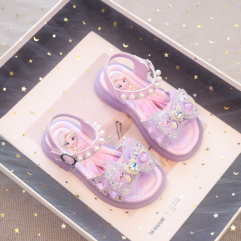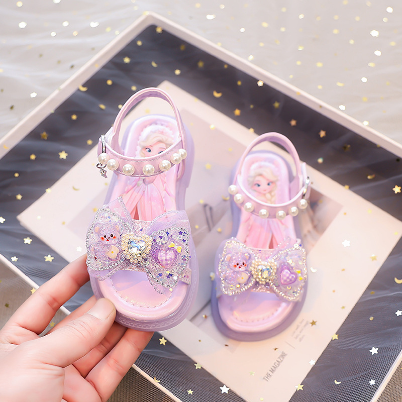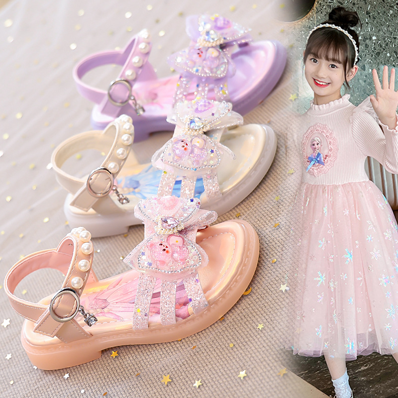 여자 샌들 새로운 만화 소녀 크리스탈 샌들 부드러운 단독 어린이 신발 3-8 년 된 해변 신발 귀여운 공주 신발스토어 가기